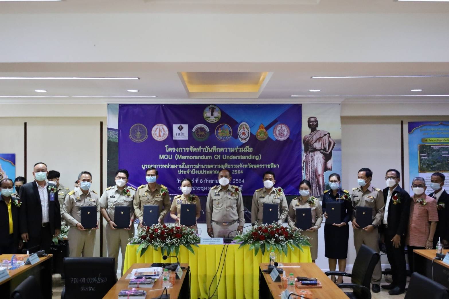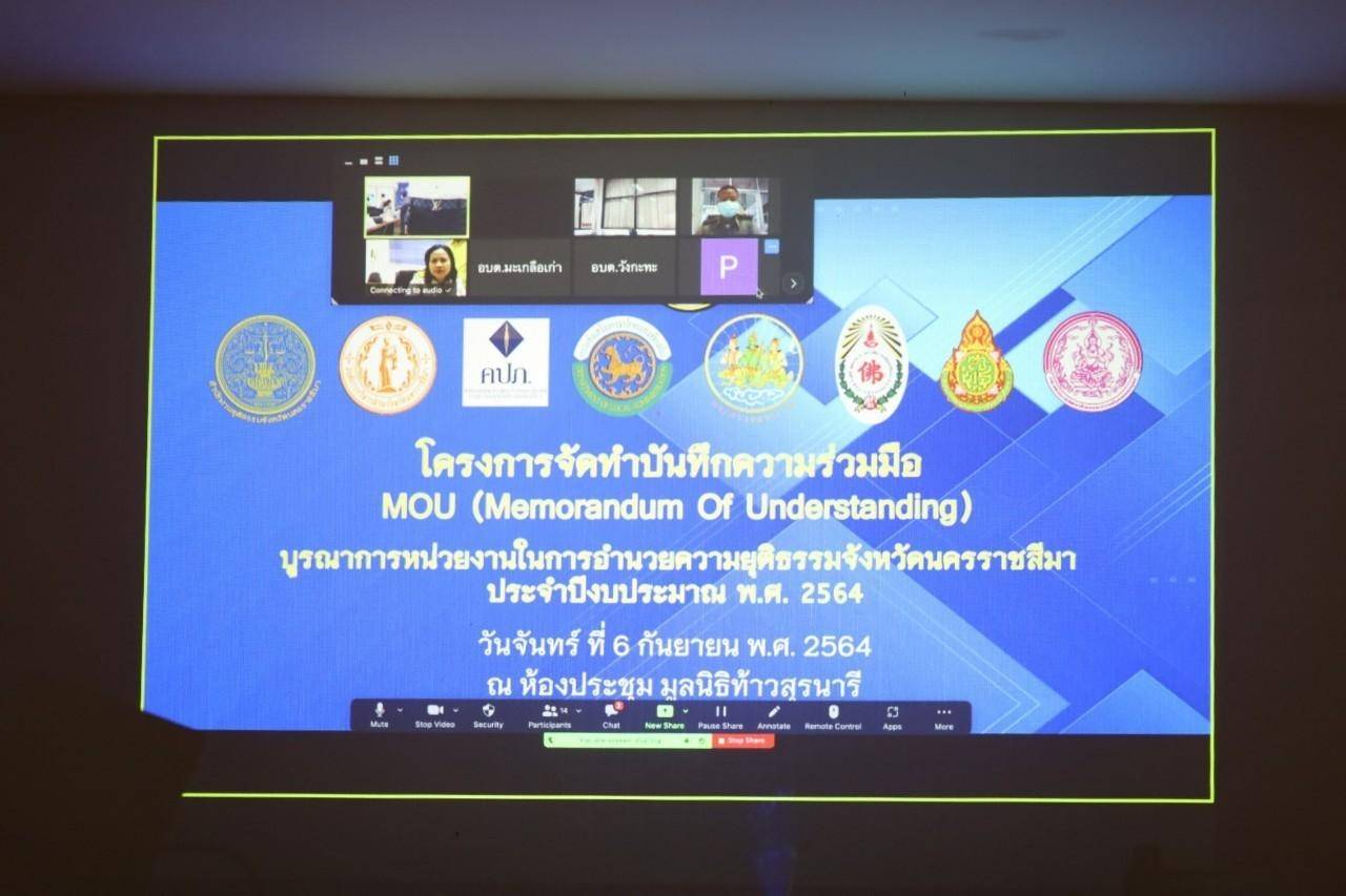วันจันทร์ที่ ๖ กันยายน ๒๕๖๔ เวลา ๐๙.๐๐ น. นายวินัย มะยมทอง แรงงานจังหวัดนครราชสีมาได้เข้าร่วมการประชุมโครงการจัดทำบันทึกความร่วมมือ MOU (Memorandum Of Understanding) บูรณาการหน่วยงานในการอำนวยความยุติธรรมจังหวัดนครราชสีมา ประจำปีงบประมาณ พ.ศ. ๒๕๖๔ ณ ห้องประชุม มูลนิธิท้าวสุรนารี