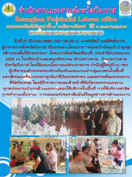 นายวิสันติ์ ประเสริฐศรี แรงงานจังหวัดบึงกาฬ ร่วมโครงการหน่วยบำบัดทุกข์ บำรุงสุข จังหวัดเคลื่อนที่อำเภอปากคาด