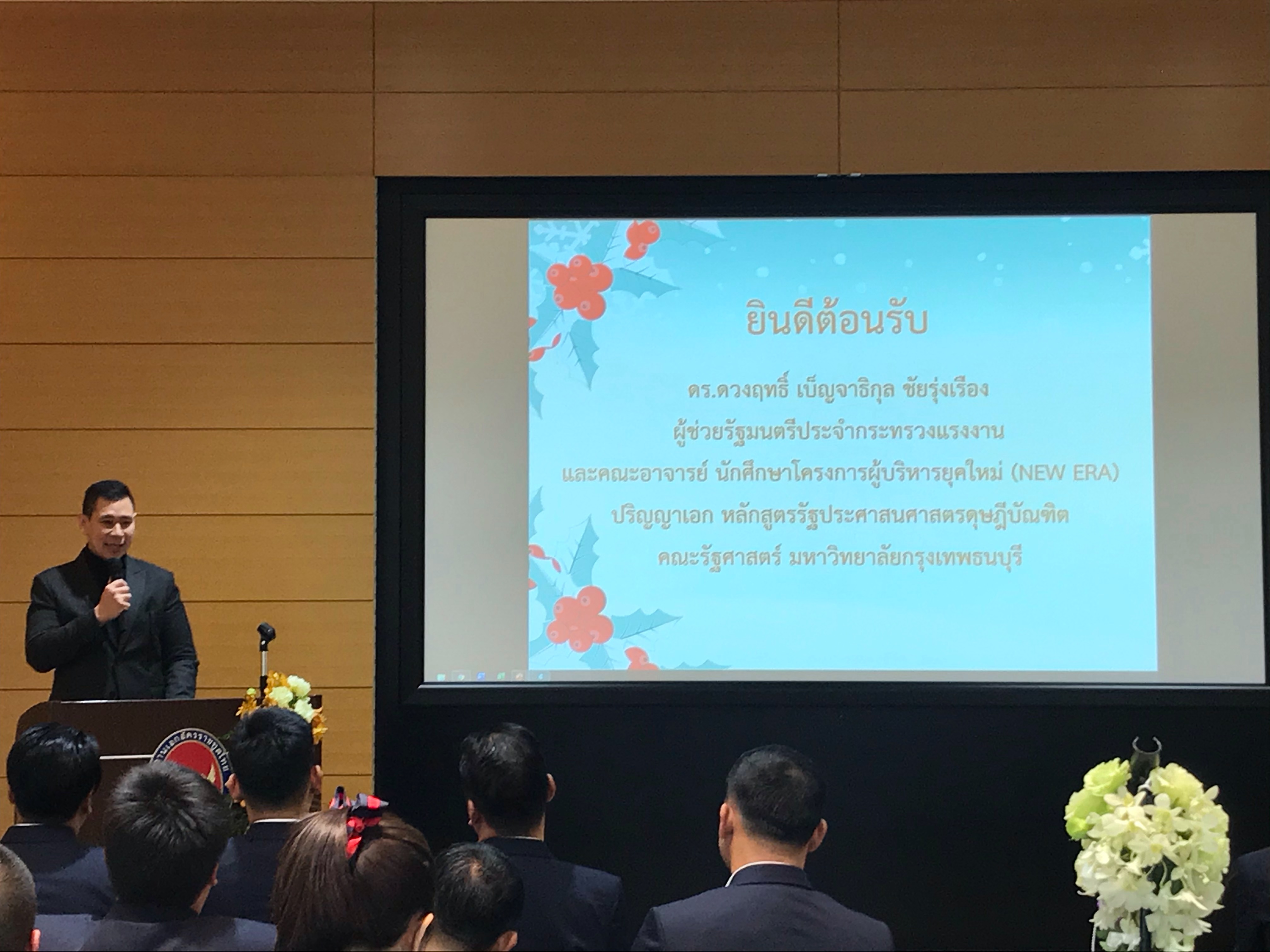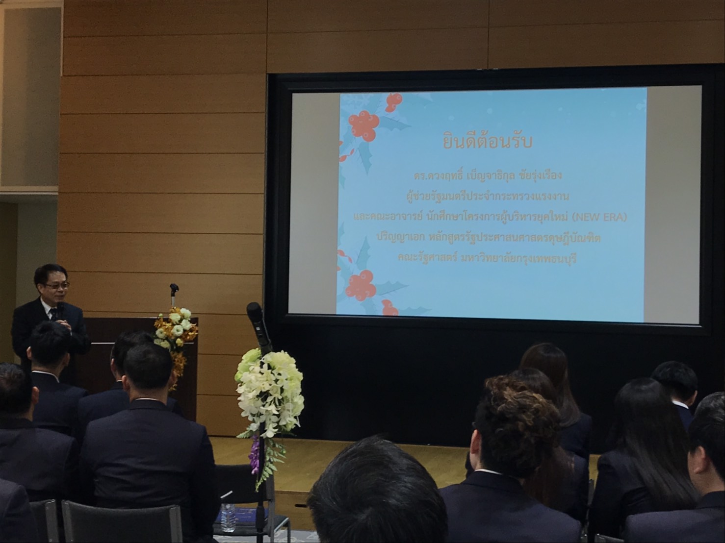 วันที่ 31 มกราคม 2563 เวลา 13.30 น. นายสายชล อกนิษฐวงศ์ อัครราชทูตที่ปรึกษา (ฝ่ายแรงงาน) ให้การต้อนรับคณะนักศึกษา และคณาจารย์โครงการผู้บริหารยุคใหม่ (NEW ERA) ปริญญาเอก หลักสูตรรัฐประศาสนศาตรดุษฎีบัณฑิต คณะรัฐศาสตร์ มหาวิทยาลับกรุงเทพธนบุรี ณ อาคารหอประชุม สถานเอกอัครราชทูต ณ กรุงโตเกียว และรับฟังการบรรยาย เรื่อง “บทบาทภารกิจในการคุ้มครอง สิทธิประโยชน์ และส่งเสริม รักษาและขยายตลาดแรงงานในญี่ปุ่น”