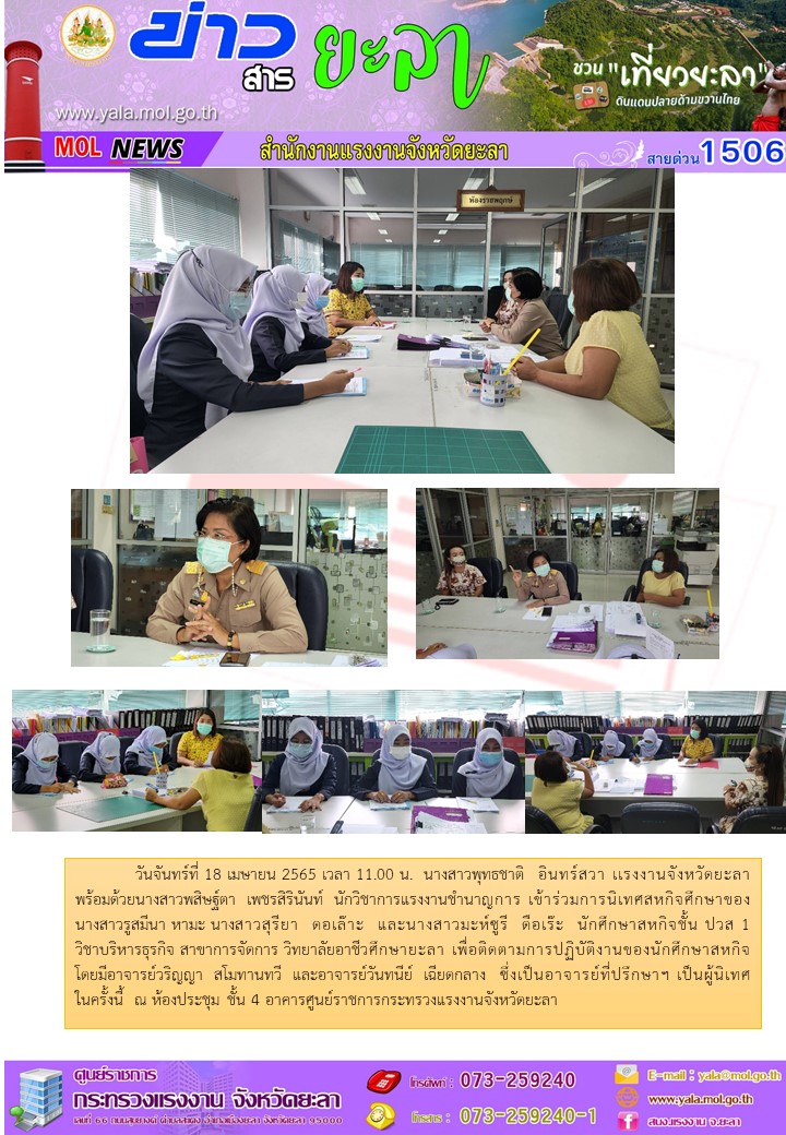 สรจ.ยะลา เข้าร่วมนิเทศสหกิจศึกษา เพื่อติดตามการปฏิบัติงานของนักศึกษา