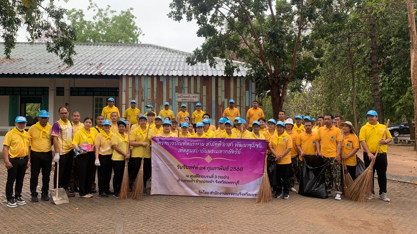 วันจันทร์ที่ 24 กุมภาพันธ์ พ.ศ. 2568 เวลา 09.30 น. ณ ศูนย์ฝึกอบรมที่ 3 (ชะอำ) ตำบลชะอำ อำเภอชะอำ จังหวัดเพชรบุรี สำนักงานแรงงานจังหวัดเพชรบุรี จัดกิจกรรม “โครงการบัณฑิตแรงงาน สามัคคี อาสา พัฒนาชุมชน เทิดทูนสถาบันพระมหากษัตริย์ จังหวัดเพชรบุรี ประจำปีงบประมาณ พ.ศ. 2568” โดยมี นางสาวอนงค์นาถ มีศิริ แรงงานจังหวัดเพชรบุรี พร้อมด้วยบัณฑิตแรงงานประจำอำเภอชะอำ อำเภอเขาย้อย อำเภอบ้านลาด อำเภอท่ายาง เจ้าหน้าที่สำนักงานแรงงานจังหวัดเพชรบุรี สำนักงานจัดหางานจังหวัดเพชรบุรี สำนักงานประกันสังคมจังหวัดเพชรบุรีอาสาสมัครแรงงานในพื้นที่ตำบลชะอำ รวมทั้งหน่วยงานภาครัฐ หน่วยงานเอกชน และประชาชนทั่วไป ร่วมกิจกรรมดังกล่าว 160 คน ทั้งนี้ โครงการดังกล่าว เพื่อเปิดโอกาสให้บัณฑิตแรงงานได้ร่วมกับภาคีเครือข่าย และประชาชนในพื้นที่ได้แสดงออกถึงความจงรักภักดี เทิดทูนต่อสถาบันพระมหากษัตริย์ อันเป็นศูนย์รวมจิตใจของประชาชนชาวไทยทั้งประเทศ โดยร่วมกันดำเนินกิจกรรมที่ก่อให้เกิดประโยชน์ต่อพื้นที่สาธารณประโยชน์ในชุมชน เพื่อเผยแพร่ประชาสัมพันธ์การดำเนินงานของกระทรวงแรงงานให้ประชาชนในพื้นที่ได้รับทราบ และเพื่อสร้างความรักสามัคคีและความสัมพันธ์อันดีระหว่างหน่วยงานภาครัฐ บัณฑิตแรงงาน และประชาชนในพื้นที่ โดยร่วมกันทำความสะอาดปรับปรุงภูมิทัศน์บริเวณศูนย์ฝึกอบรมที่ 3 (ชะอำ) ตำบลชะอำ อำเภอชะอำ จังหวัดเพชรบุรี ให้ดูสะอาดสวยงามร่มรื่นต่อไป