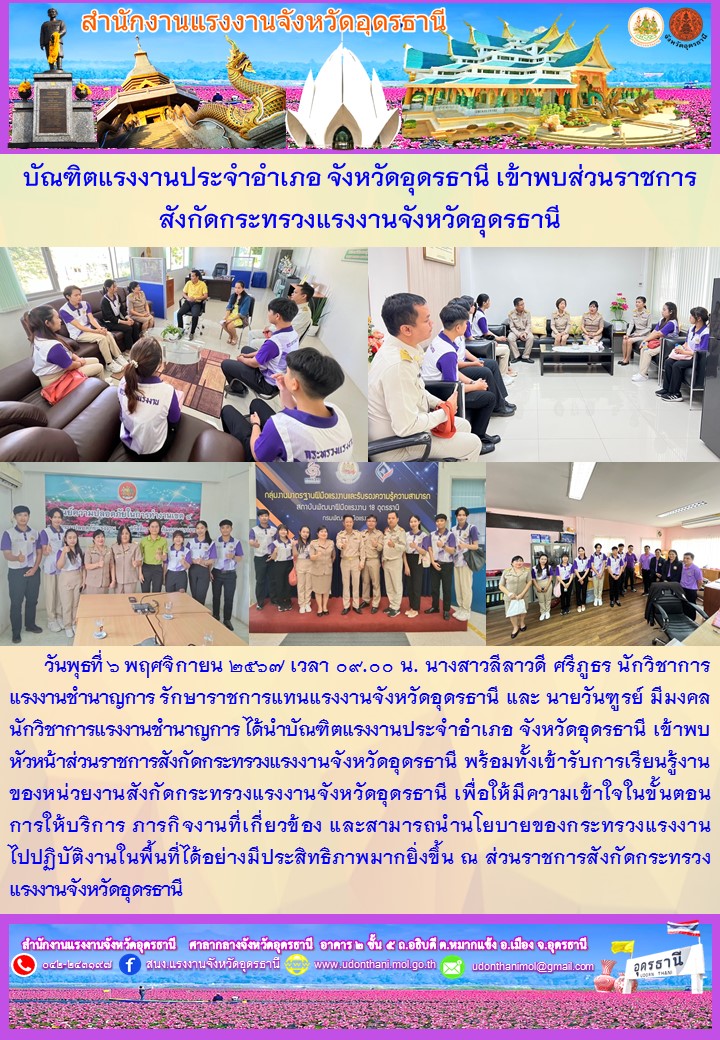 บัณฑิตแรงงานประจำอำเภอ จังหวัดอุดรธานี เข้าพบส่วนราชการสังกัดกระทรวงแรงงานจังหวัดอุดรธานี