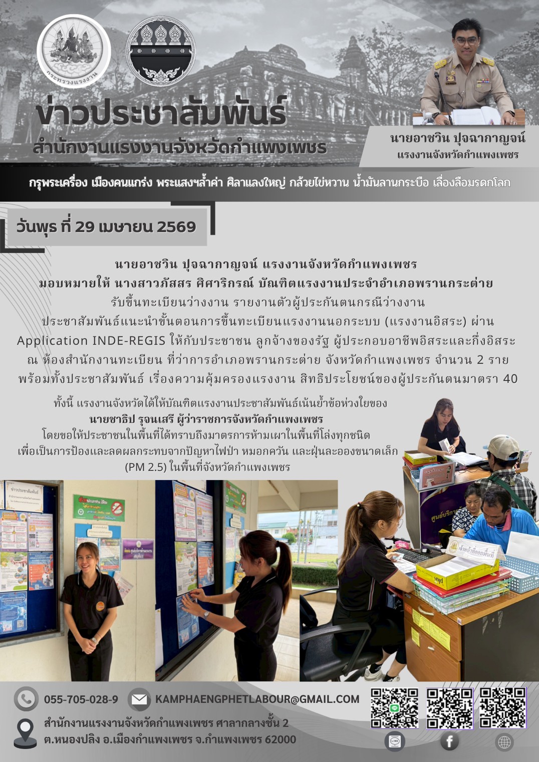 บัณฑิตแรงงานประจำอำเภอพรานกระต่าย จังหวัดกำแพงเพชร ประชาสัมพันธ์ภารกิจของหน่วยงานในสังกัดกระทรวงแรงงาน
