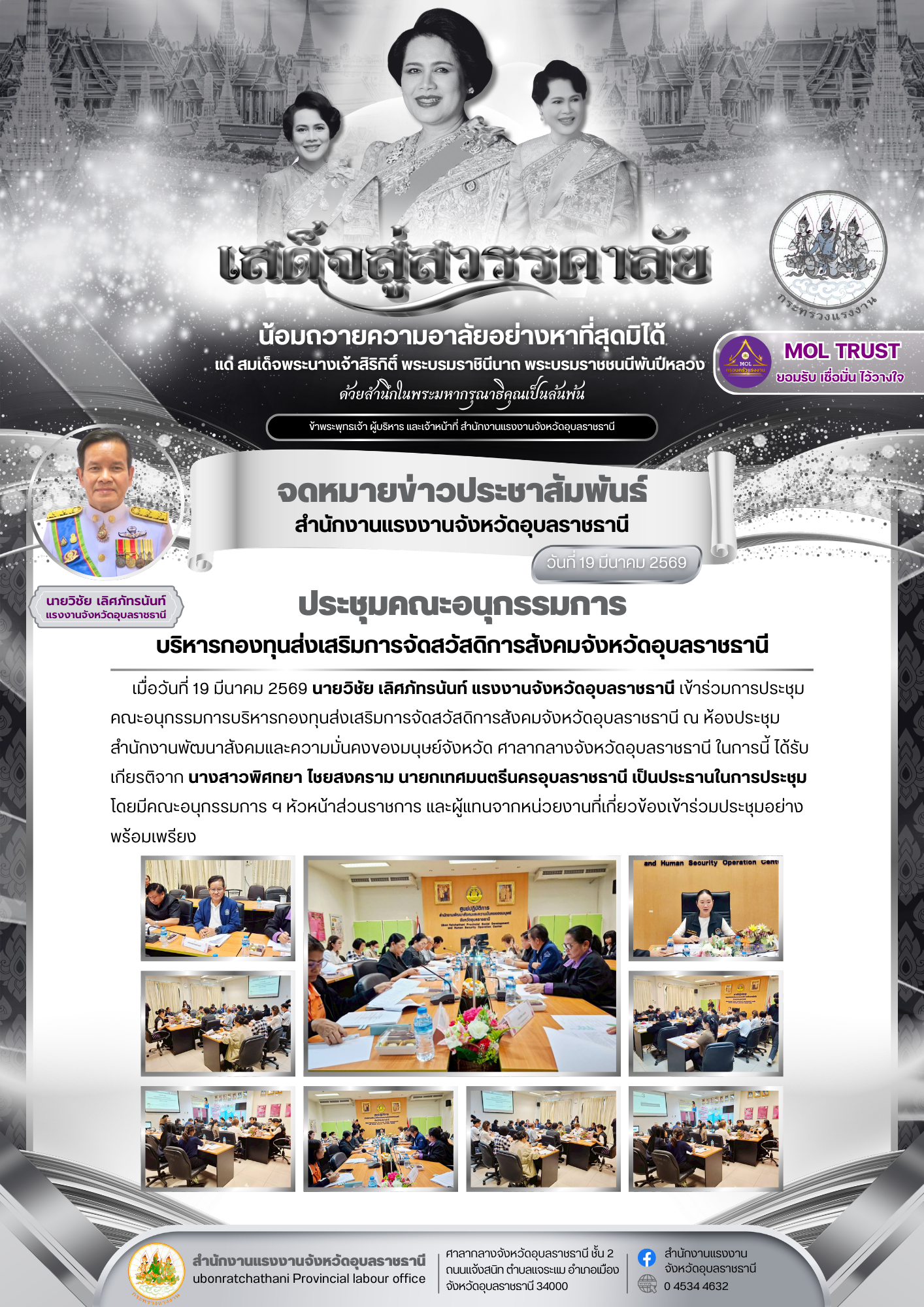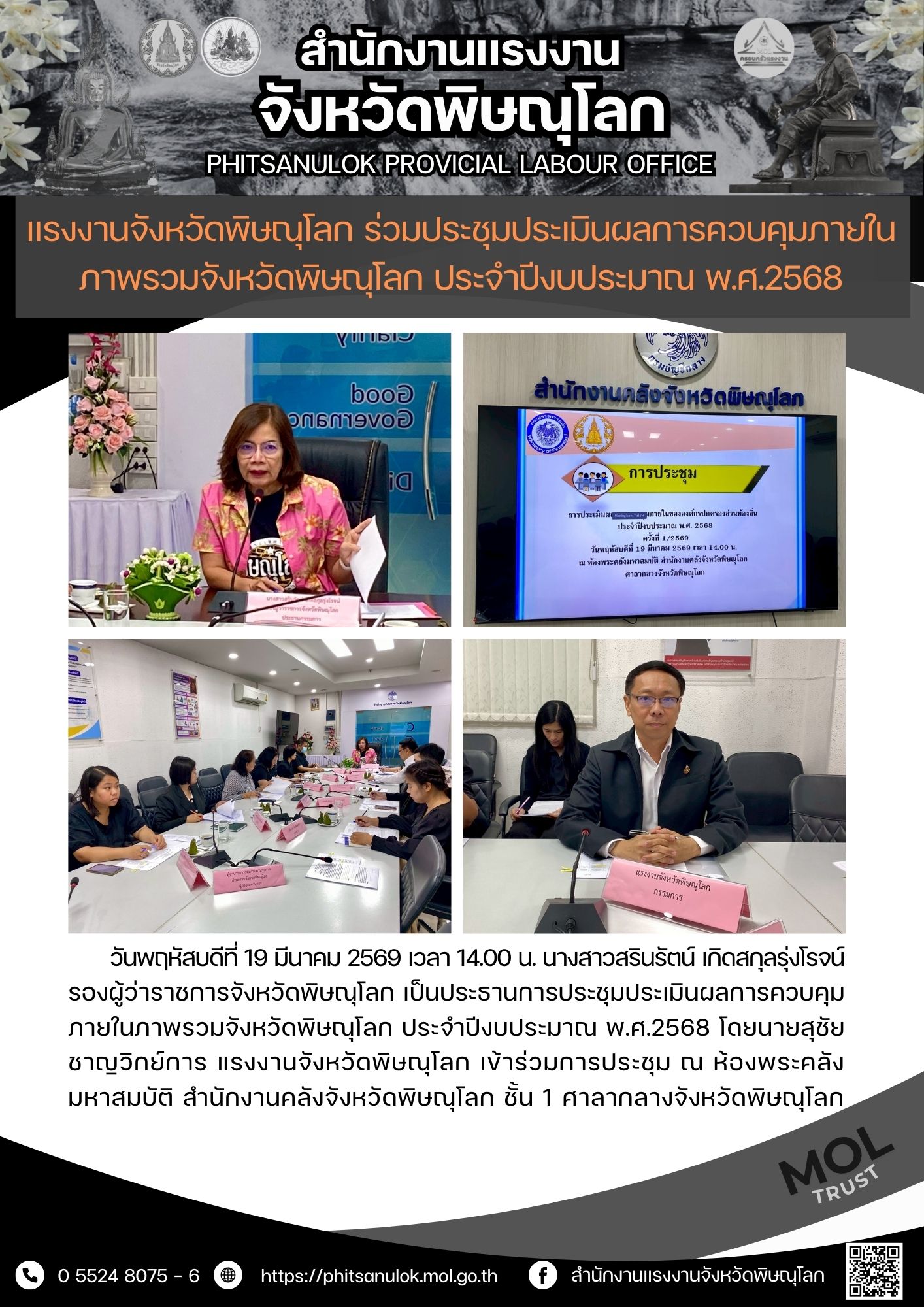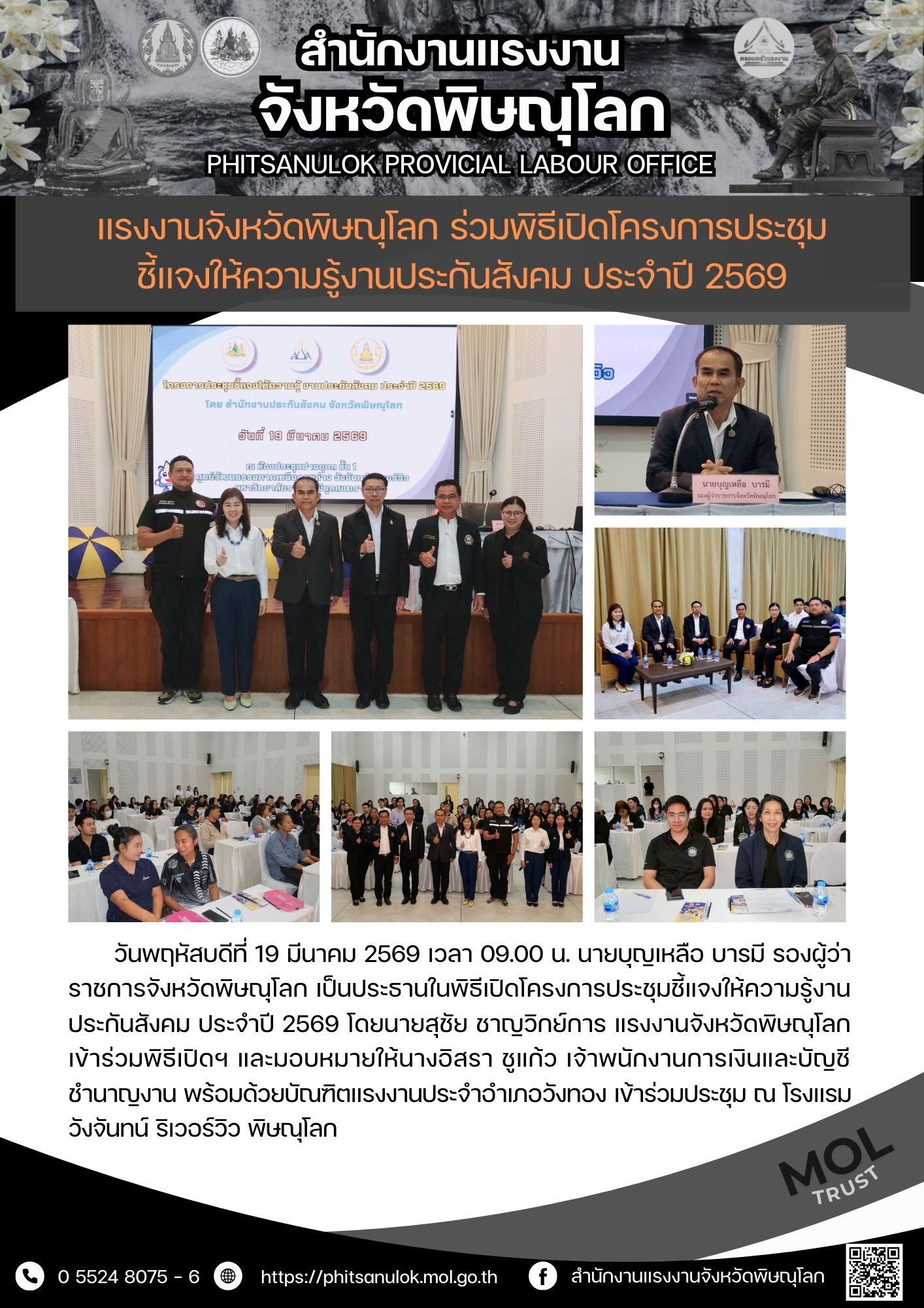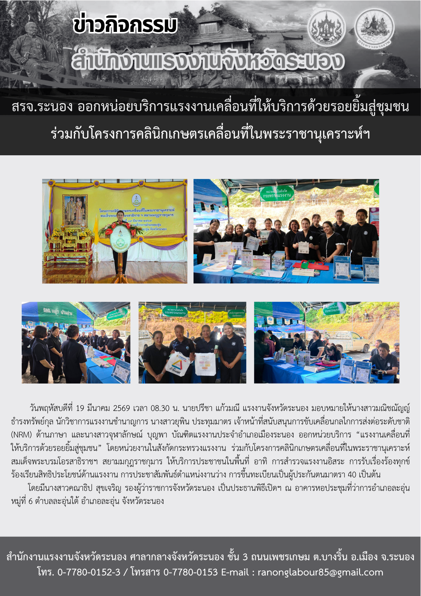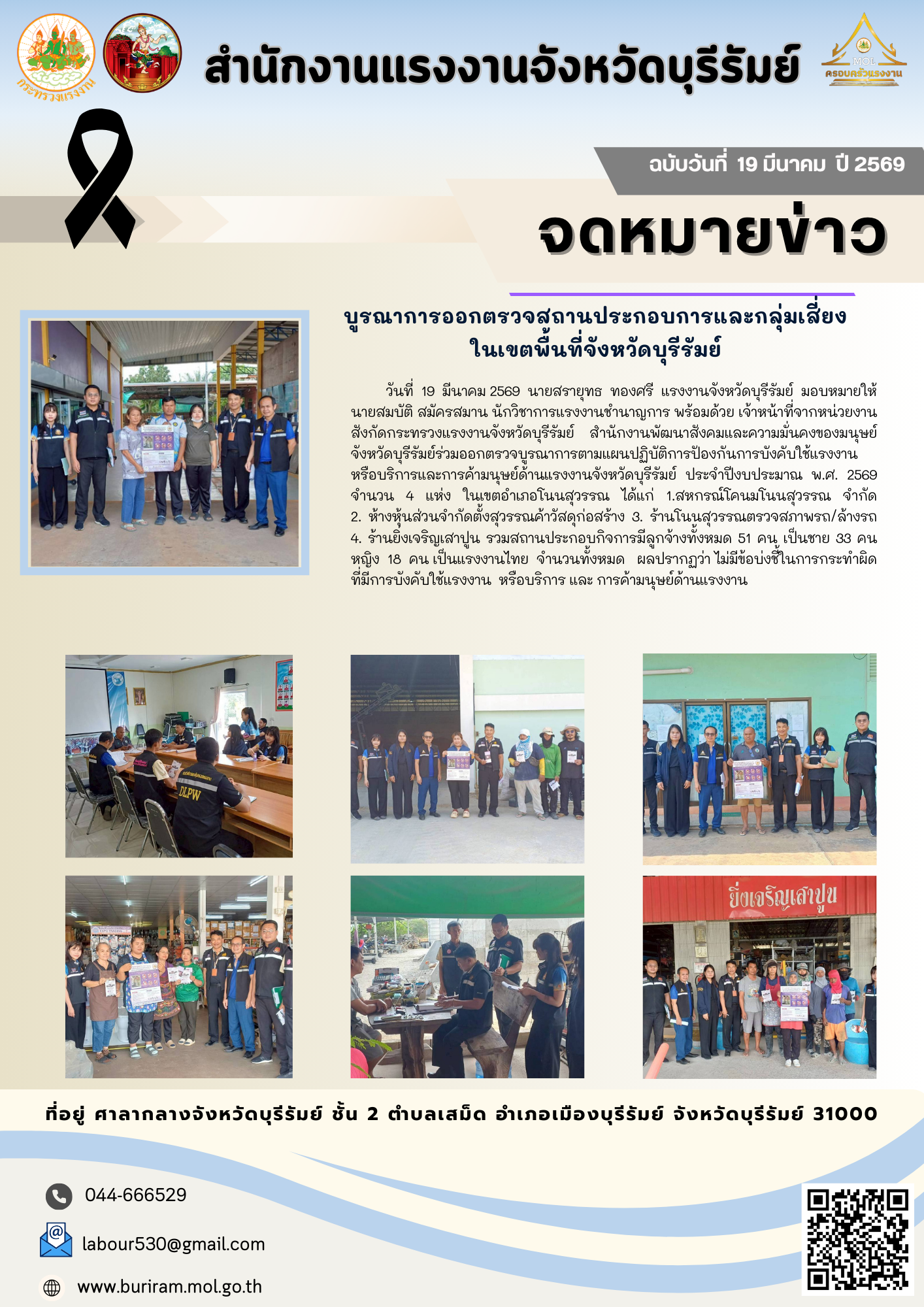 วันพฤหัสบดีที่ 19 มีนาคม 2569 เวลา 09.00 น. นางรภัสสา พานิกุล แรงงานจังหวัดสมุทรสงคราม มอบหมายให้ นางสาวธีรจุฑา รสหวาน บัณฑิตแรงงานอำเภอเมืองสมุทรสงคราม ลงพื้นที่ร่วมกับสำนักงานจัดหางานจังหวัดสมุทรสงคราม ตรวจติดตามการปฏิบัติงานตามโครงการส่งเสริมการจ้างงานคนพิการเชิงสังคม โดยมี บริษัท อเด็คโก้ เพชรบุรีตัดใหม่ จำกัด เป็นผู้สนับสนุนในการจ้างเหมาช่วงงาน หรือจ้างเหมาบริการคนพิการ ปฏิบัติงาน ณ องค์การบริหารส่วนตำบลนางตะเคียน จำนวน 2 ราย