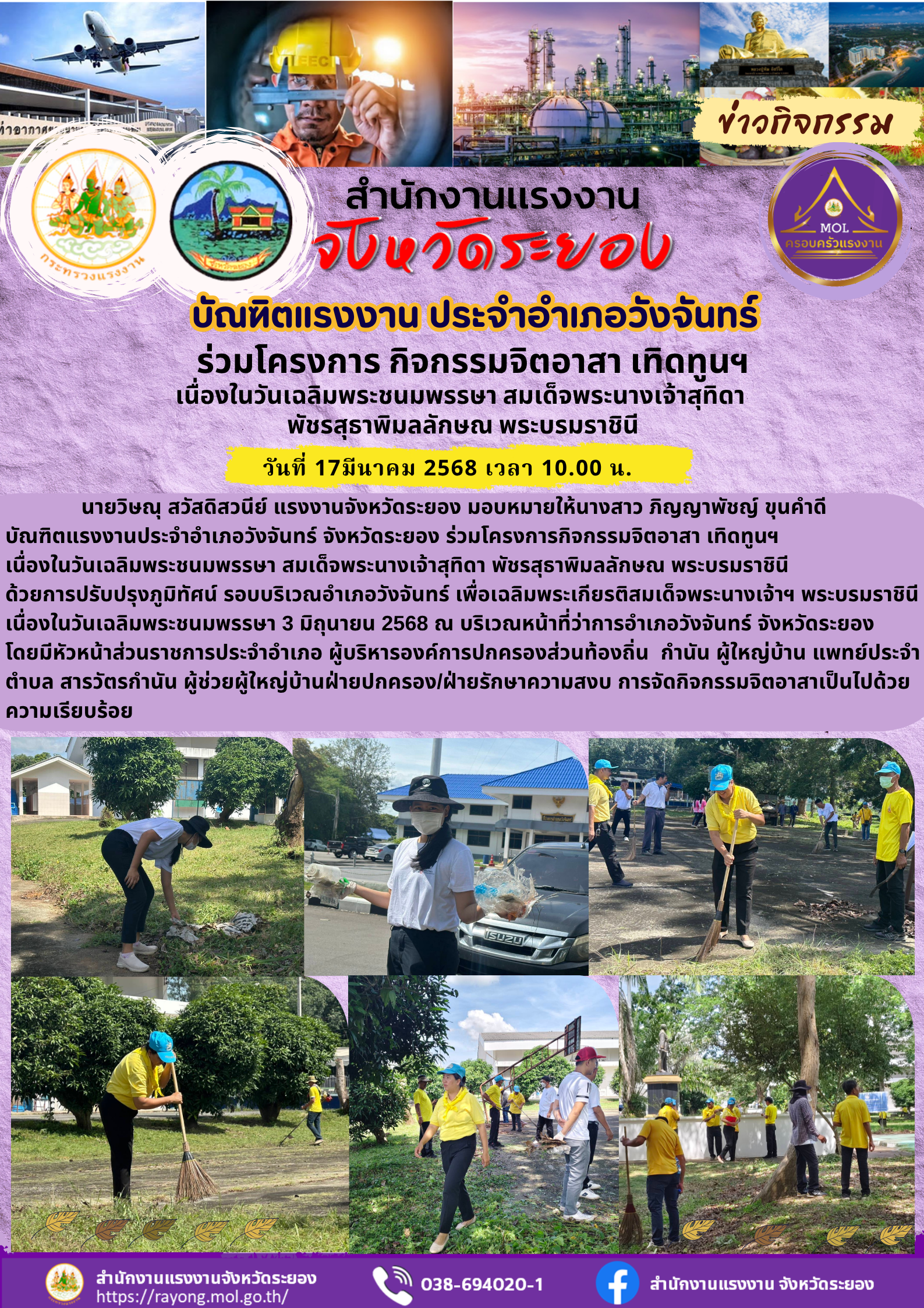 บัณฑิตแรงงานประจำอำเภอวังจันทร์ จังหวัดระยอง ร่วมโครงการกิจกรรมจิตอาสา เทิดทูนฯ