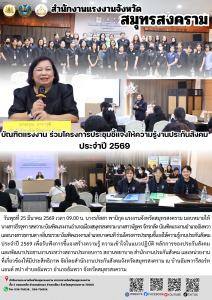 วันพุธที่ 25 มีนาคม 2569 เวลา 09.00 น. นางรภัสสา พานิกุล แรงงานจังหวัดสมุทรสงคราม มอบหมายให้นางสาวธีรจุฑา รสหวาน บัณฑิตแรงงานอำเภอเมืองสมุทรสงคราม นางสาวนัฐพร จักรกลัด บัณฑิตแรงงานอำเภออัมพวา และนางสาวธกานดา กลิ่นระรวย บัณฑิตแรงงานอำเภอบางคนที ร่วมโครงการประชุมชี้แจงให้ความรู้งานประกันสังคม ประจำปี 2569 เพื่อรับฟังการชี้แจงสร้างความรู้ ความเข้าใจในแนวปฏิบัติ หลักการของประกันสังคมและพัฒนาประสานงานระหว่างสถานประกอบการ สถานพยาบาล สำนักงานประกันสังคม และหน่วยงานที่เกี่ยวข้องให้มีประสิทธิภาพ จัดโดยสำนักงานประกันสังคมจังหวัดสมุทรสงคราม ณ บ้านอัมพวารีสอร์ท แอนด์ สปา ตำบลอัมพวา อำเภออัมพวา จังหวัดสมุทรสงคราม