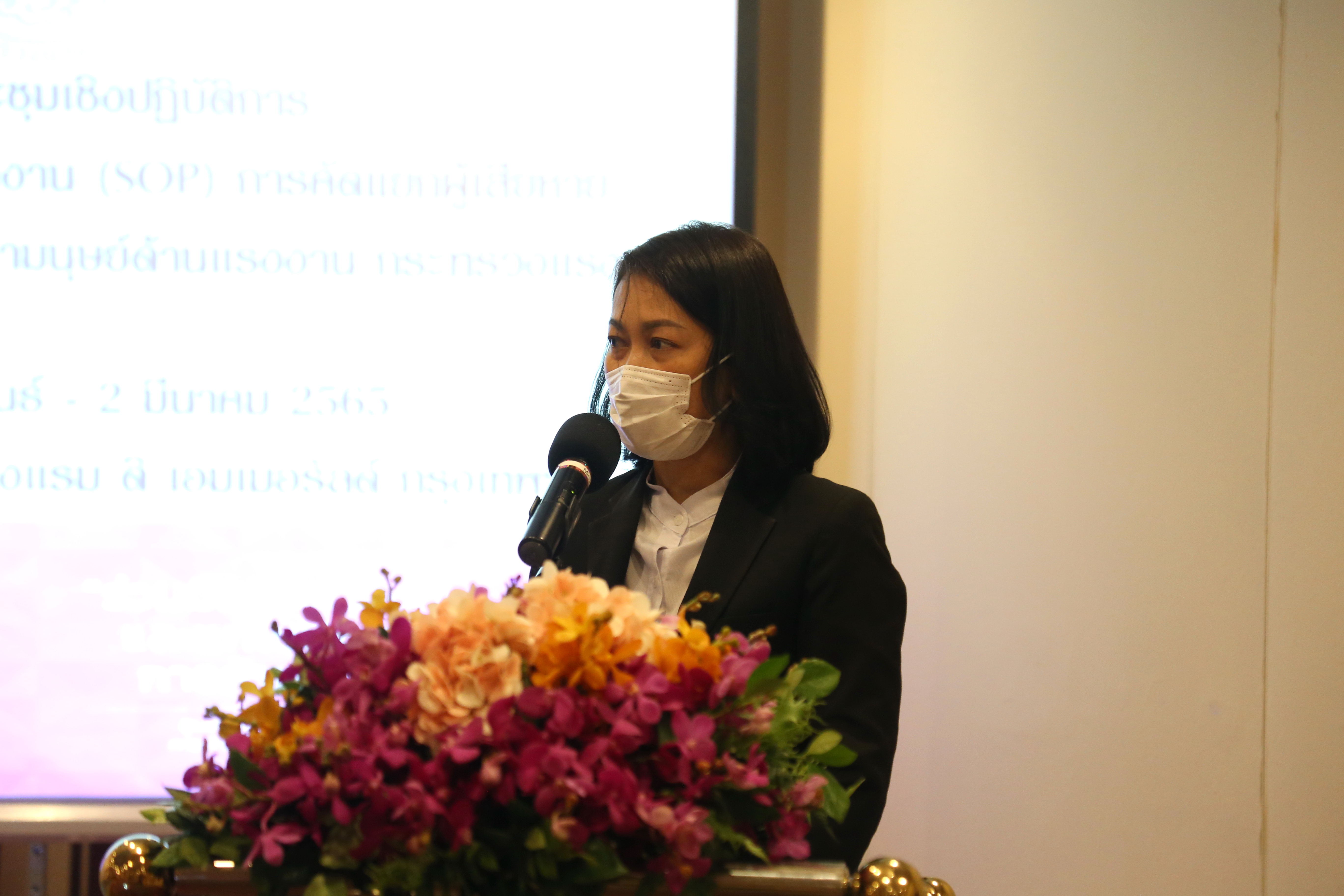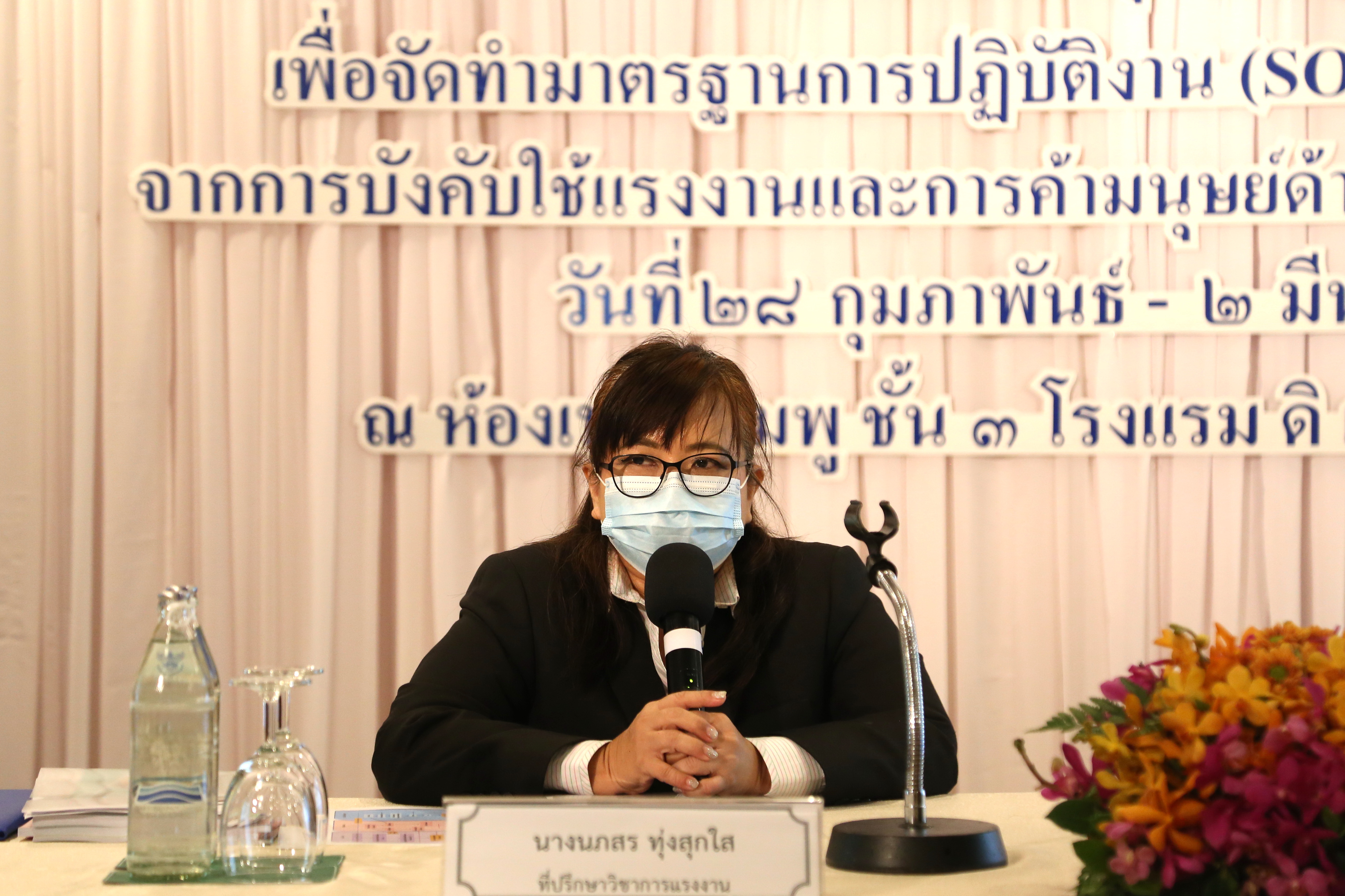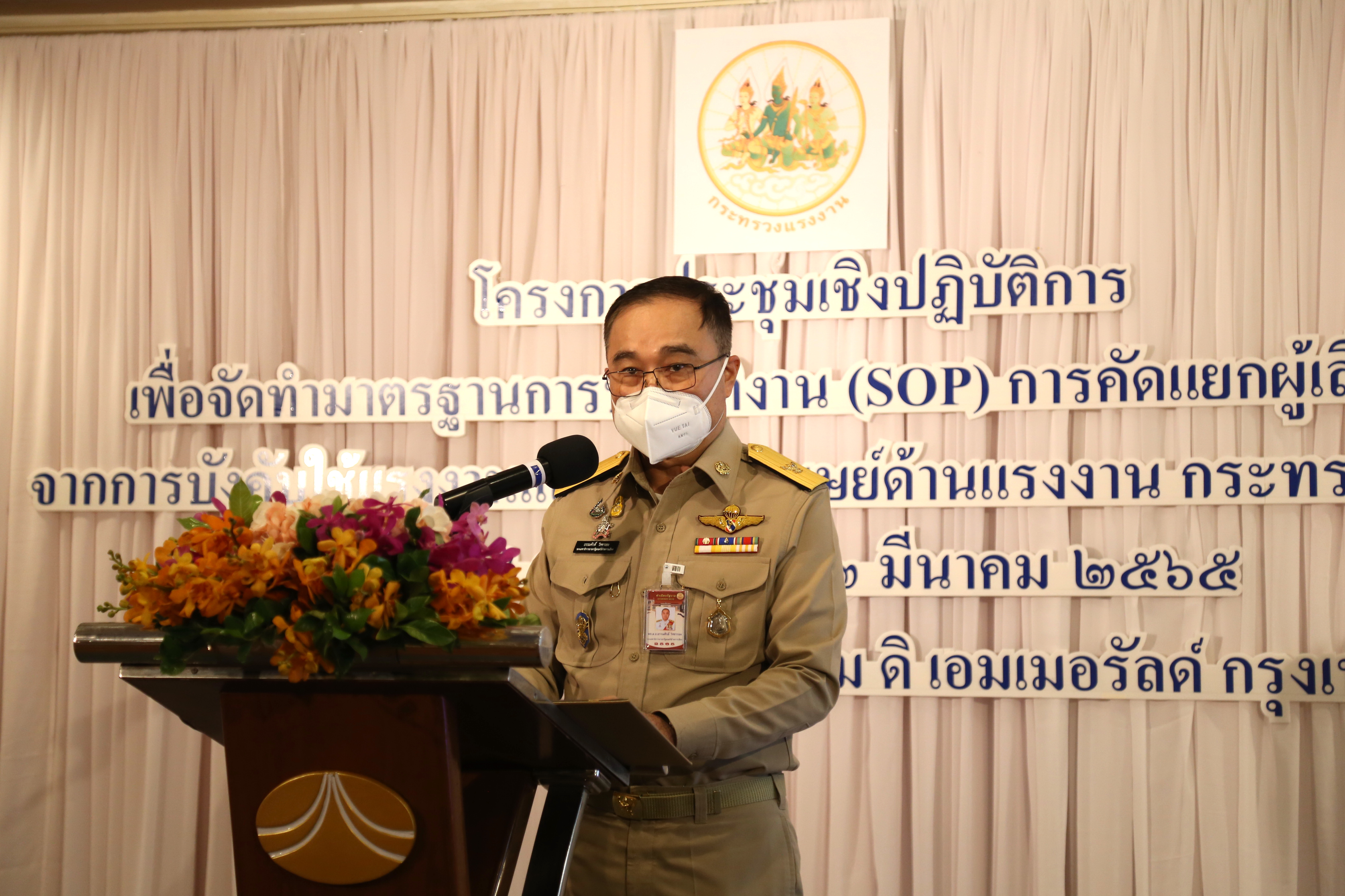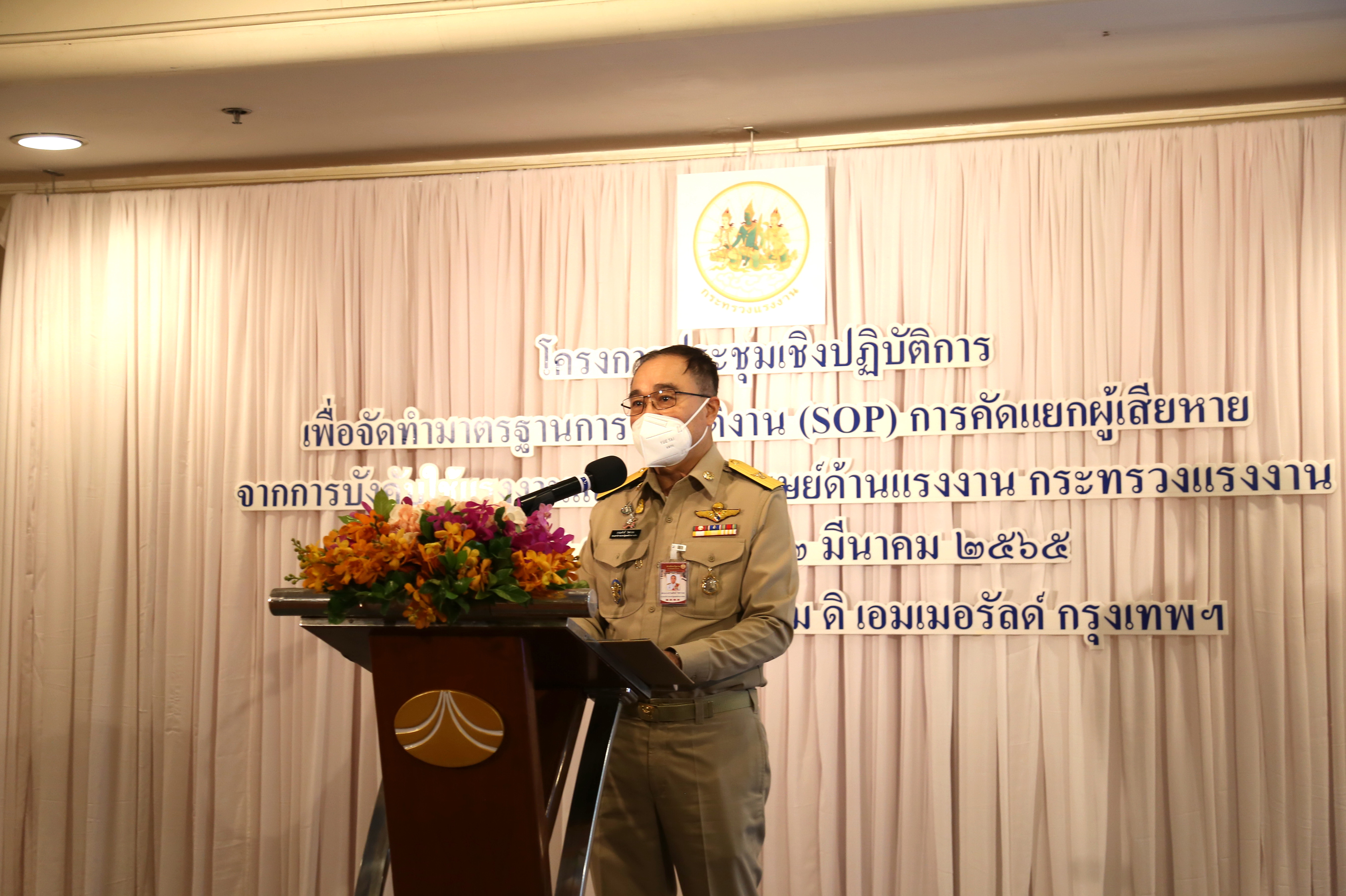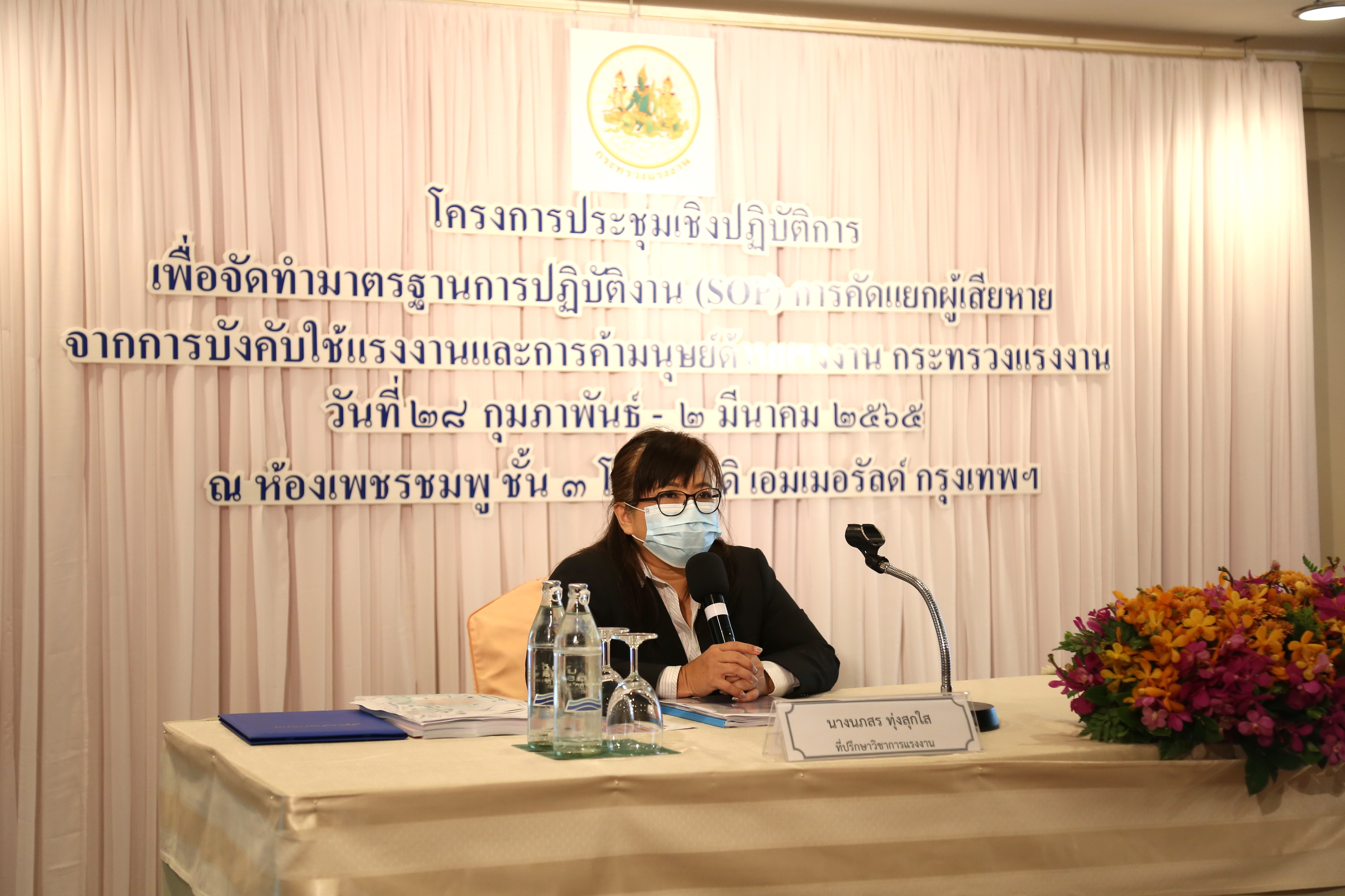 ได้มอบหมายให้สำนักเลขานุการศูนย์บัญชาการป้องกันการค้ามนุษย์ด้านแรงงาน ดำเนินการจัดโครงการประชุมเชิงปฏิบัติการในวันนี้ ซึ่งเป็นการจัดทำขั้นตอนและแนวทางปฏิบัติ ในการคัดแยกผู้เสียหายจากการค้ามนุษย์ด้านแรงงานและการบังคับใช้แรงงาน ซึ่งการมีขั้นตอนและแนวทางปฏิบัติ (SOP) จะเป็นกลไกสำคัญที่จะยกระดับมาตรฐานการปฏิบัติงานของเจ้าหน้าที่ผู้ปฏิบัติงานให้สามารถปฏิบัติงานได้อย่างมีประสิทธิภาพมากขึ้น สามารถคัดแยกผู้เสียหายจากการบังคับใช้แรงงานและการค้ามนุษย์ด้านแรงงาน และส่งต่อคดีที่อาจเกิดขึ้นไปยังหน่วยงานบังคับใช้กฎหมายต่อไปอย่างมีประสิทธิภาพ เทียบเท่ากับมาตรฐานขั้นต่ำในกฎหมายคุ้มครองผู้เสียหายจากการค้ามนุษย์ ค.ศ. 2000 (TVPA) ของประเทศสหรัฐอเมริกา เพื่อให้ประเทศไทยได้รับการจัดอันดับในรายงานการค้ามนุษย์เพื่อมุ่งสู่ระดับ Tier 2