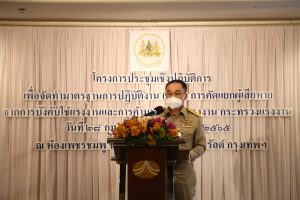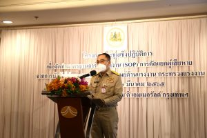 เมื่อวันที่ 28 กุมภาพันธ์ 2565 พลตำรวจเอก ธรรมศักดิ์ วิชชารยะ รองเลขาธิการนายกรัฐมนตรีฝ่ายการเมือง เป็นประธานกล่าวเปิดโครงการประชุมเชิงปฏิบัติการเพื่อจัดทำมาตรฐานการปฏิบัติงาน (Standard Operation Procedure : SOP) การคัดแยกผู้เสียหายจากการบังคับใช้แรงงานและการค้ามนุษย์ด้านแรงงาน กระทรวงแรงงาน โดยมี พล.ต.ต.นันทชาติ ศุภมงคล ประจำสำนักเลขาธิการนายกรัฐมนตรี ปฏิบัติหน้าที่ประจำกระทรวงแรงงาน นายวรรณรัตน์ ศรีสุขใส รองปลัดกระทรวงแรงงาน พร้อมด้วยผู้แทนกระทรวงแรงงาน หน่วยงานภาครัฐ องค์กรพัฒนาเอกชน (NGO) เข้าร่วมในครั้งนี้ด้วย โอกาสนี้ นางนภสร ทุ่งสุกใส ที่ปรึกษาวิชาการแรงงาน ร่วมบรรยายในหัวข้อ นโยบายการป้องกันการค้ามนุษย์ด้านแรงงาน ณ ห้องเพชรชมพู ชั้น 3 โรงแรม ดิ เอมเมอรัลด์ กรุงเทพมหานคร