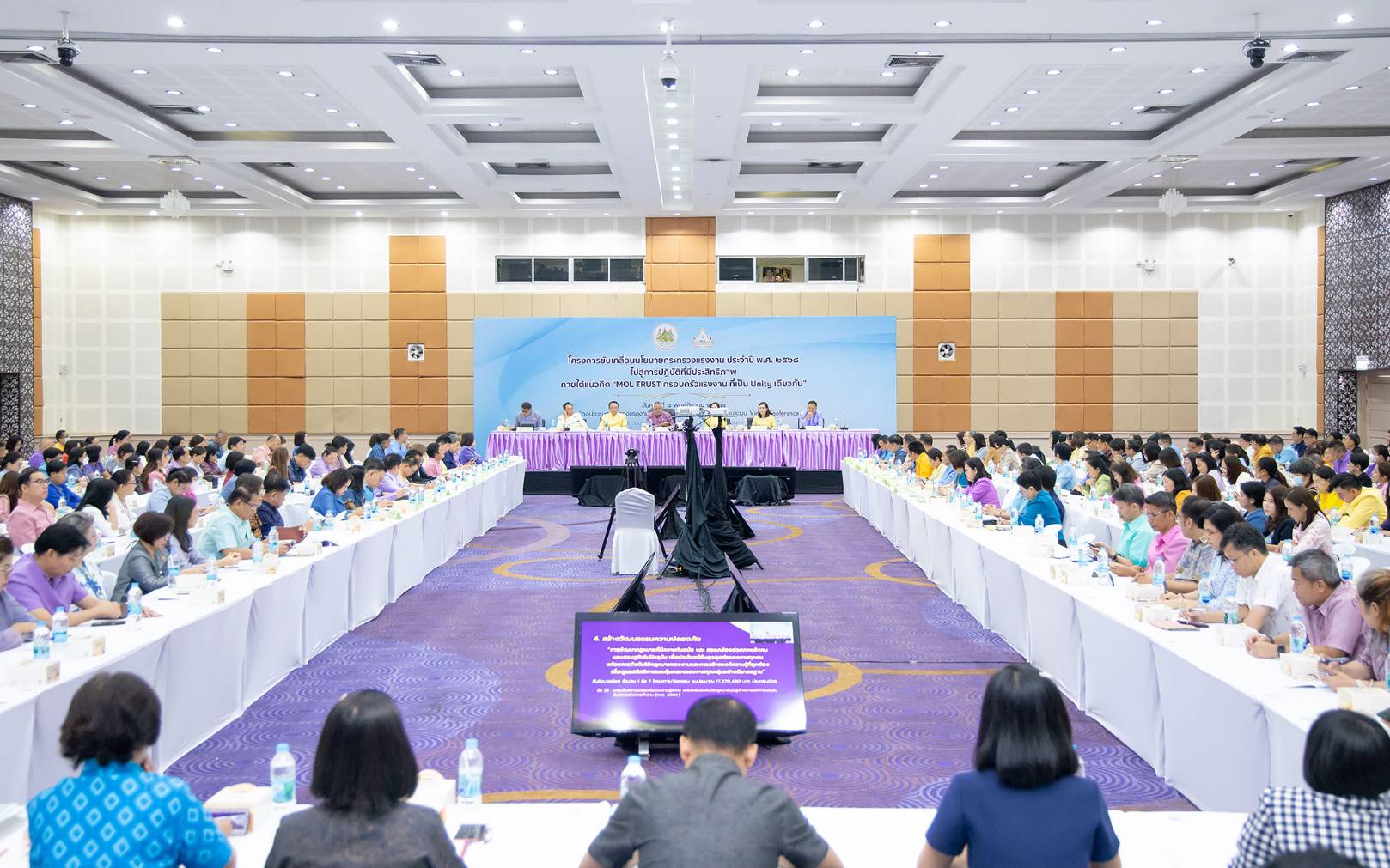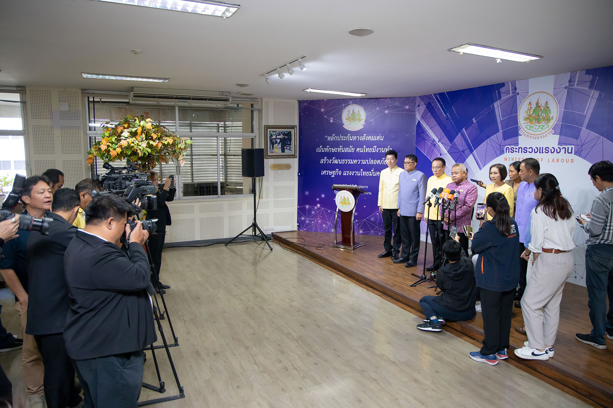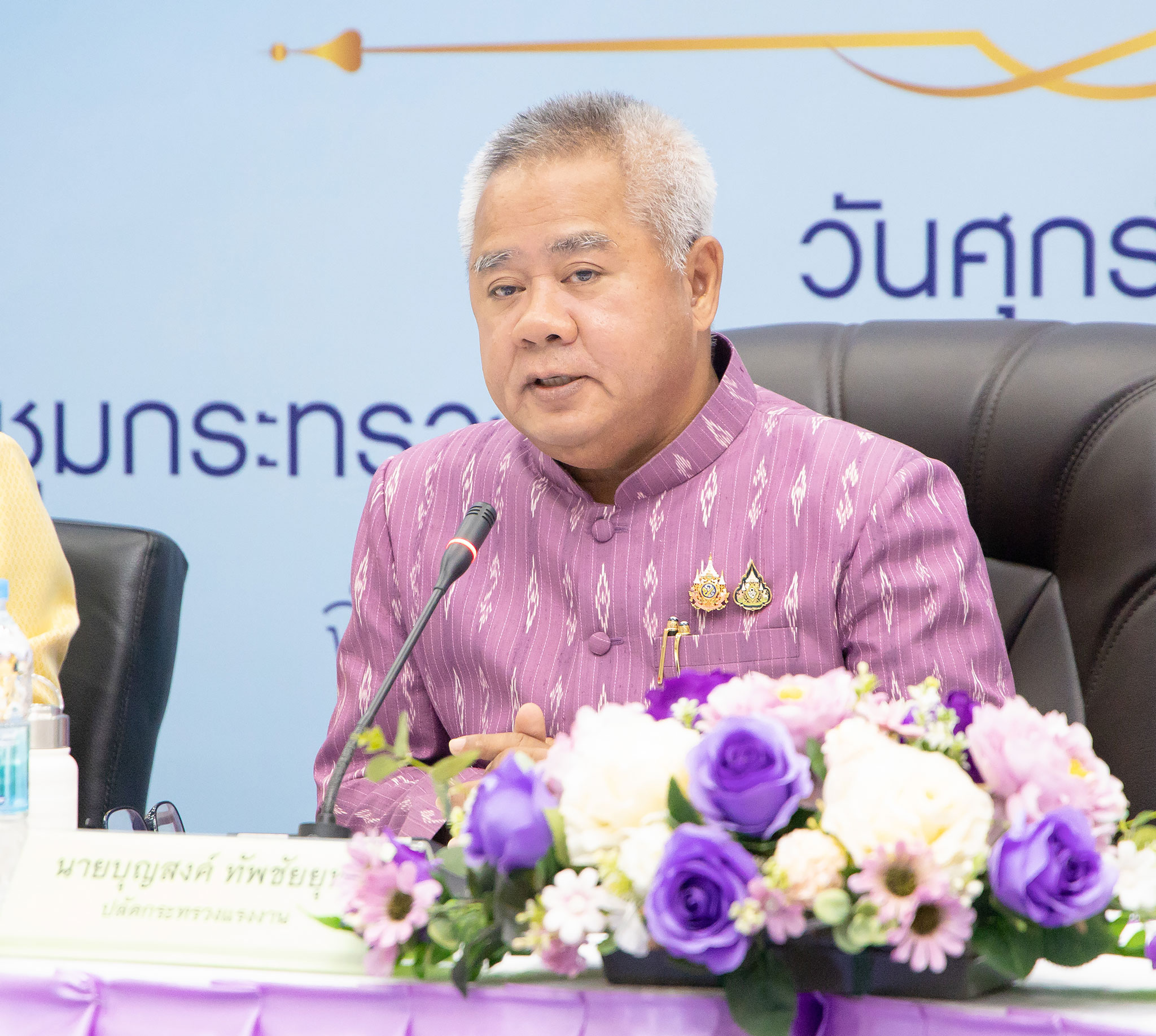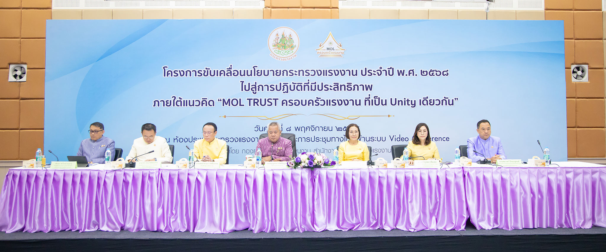 วันที่ 8 พฤศจิกายน 2567 เวลา 08.00 น. นายบุญสงค์ ทัพชัยยุทธ์ ปลัดกระทรวงแรงงาน กล่าวมอบนโยบายแนวทางการดำเนินงาน แก่ข้าราชการกระทรวงแรงงานทั่วประเทศเพื่อขับเคลื่อนนโยบายกระทรวงแรงงาน ปีงบประมาณ พ.ศ. 2568 ณ ห้องประชุมกระทรวงแรงงาน ชั้น 5 อาคารกระทรวงแรงงาน ว่า ภายใต้การนำของท่านพิพัฒน์ รัชกิจประการ รัฐมนตรีว่าการกระทรวงแรงงาน ที่มุ่งเน้นนโยบาย “หลักประกันทางสังคมเด่น เน้นทักษะทันสมัย คนไทยมีงานทำ สร้างวัฒนธรรมความปลอดภัย เศรษฐกิจ แรงงานไทยมั่นคง”ขับเคลื่อนภารกิจสำคัญเพื่อยกระดับคุณภาพชีวิตและการทำงานของพี่น้องผู้ทำงาน รุกนโยบายกว่า 24 ข้อ ขับเคลื่อนโครงการ/กิจกรรมกว่า 90 โครงการ/กิจกรรม งบประมาณรวมทั้งสิ้นเกือบ 12 ล้านบาท โดยใช้แนวคิด “MOL TRUST” ขับเคลื่อนกระทรวงแรงงานสู่ความสำเร็จ เป็นองค์กรที่เป็นที่ ยอมรับ เชื่อมั่น ไว้วางใจ ในการพัฒนาแรงงานในทุกมิติ เพื่อเป็นกำลังสำคัญในการขับเคลื่อนเศรษฐกิจไทย