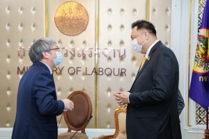 เมื่อวันที่ 29 เมษายน 2565 นายสุชาติ ชมกลิ่น รัฐมนตรีว่าการกระทรวงแรงงาน ให้การต้อนรับ Mr.Jackie Chang ประธานบริหารบริษัท เดลต้า อีเลคโทรนิคส์ (ประเทศไทย) จำกัด มหาชน พร้อมคณะ ที่ได้เข้าขอบคุณกระทรวงแรงงาน เนื่องในโอกาสที่มอบวัคซีนแก่พนักงานของบริษัทฯ ในการป้องกันการแพร่ระบาดของโรคโควิด-19 ภายใต้โครงการ Factory Sandbox ที่ดำเนินการโดยกระทรวงแรงงานตามนโยบายรัฐบาล โดยมี นายบุญชอบ สุทธมนัสวงษ์ ปลัดกระทรวงแรงงาน นางเธียรรัตน์ นะวะมะวัฒน์ โฆษกกระทรวงแรงงาน (ฝ่ายการเมือง) นายไพโรจน์ โชติกเสถียร อธิบดีกรมการจัดหางาน นายนิยม สองแก้ว อธิบดีกรมสวัสดิการและคุ้มครองแรงงาน นายบุญสงค์ ทัพชัยยุทธ์ เลขาธิการสำนักงานประกันสังคม และนางสาวไพลิน จินดามณีพร รองอธิบดีกรมพัฒนาฝีมือแรงงาน ร่วมให้การต้อนรับ ณ ห้องจัตุมงคล ชั้น 6 อาคารกระทรวงแรงงาน