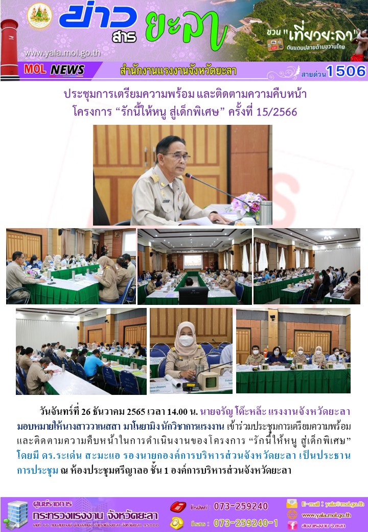 สรจ.ยะลา ประชุมการเตรียมความพร้อม เเละติดตามความคืบหน้า โครงการ “รักนี้ให้หนู สู่เด็กพิเศษ”