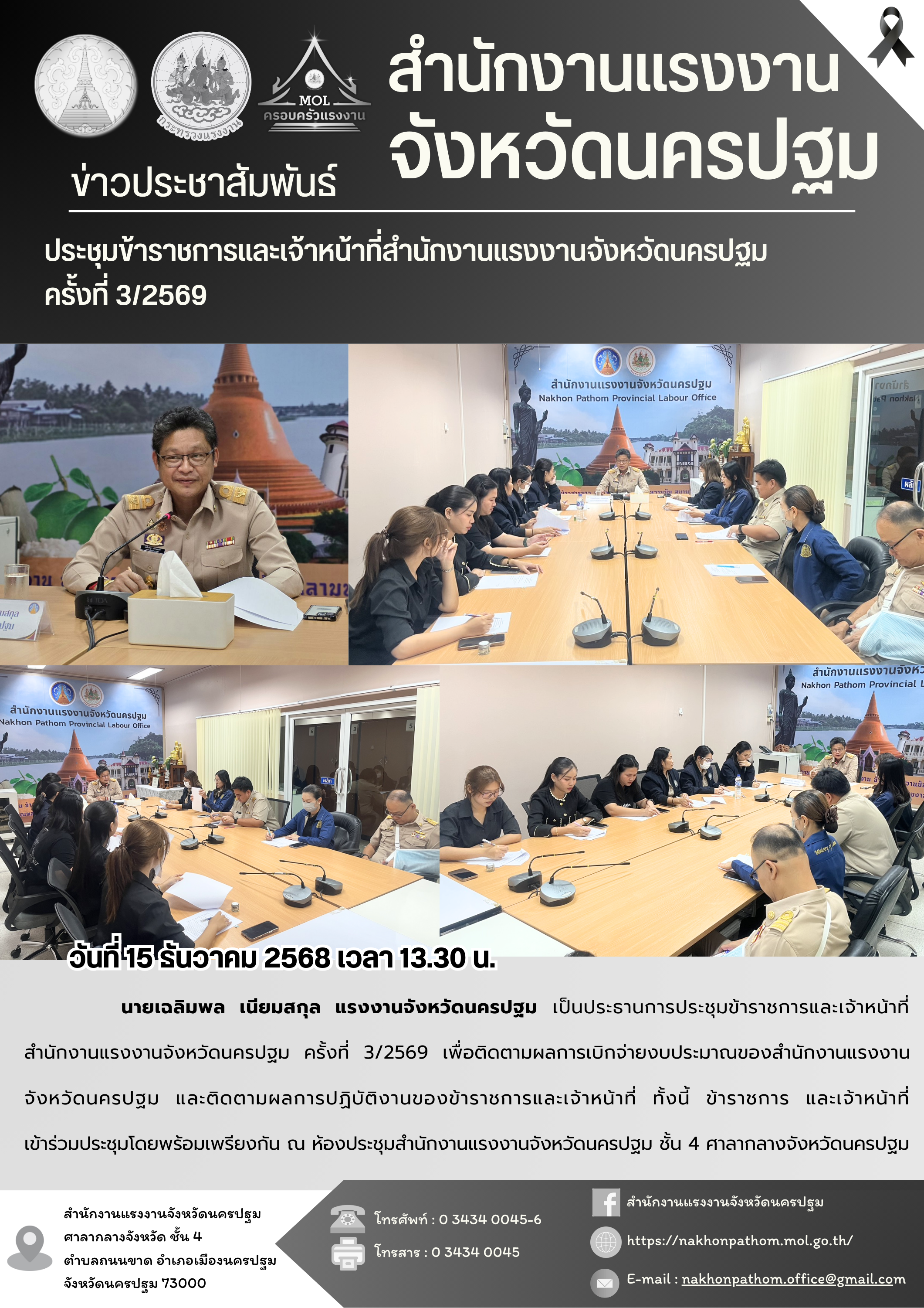 ประชุมข้าราชการและเจ้าหน้าที่สำนักงานแรงงานจังหวัดนครปฐม ครั้งที่ 3/2569