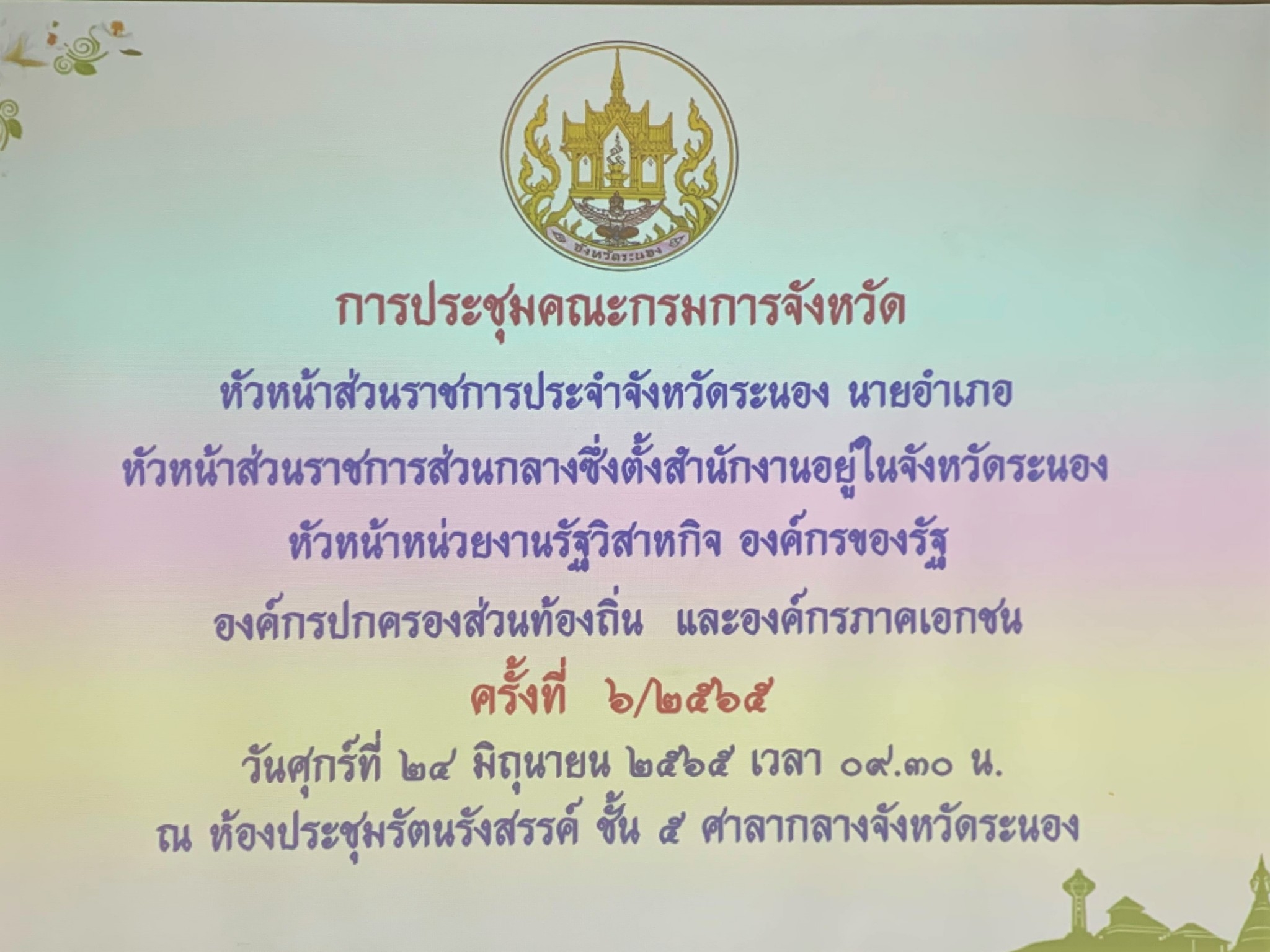 สรจ.ระนอง ร่วมประชุมคณะกรมการจังหวัด หัวหน้าส่วนราชการฯ ครั้งที่ 6/2565