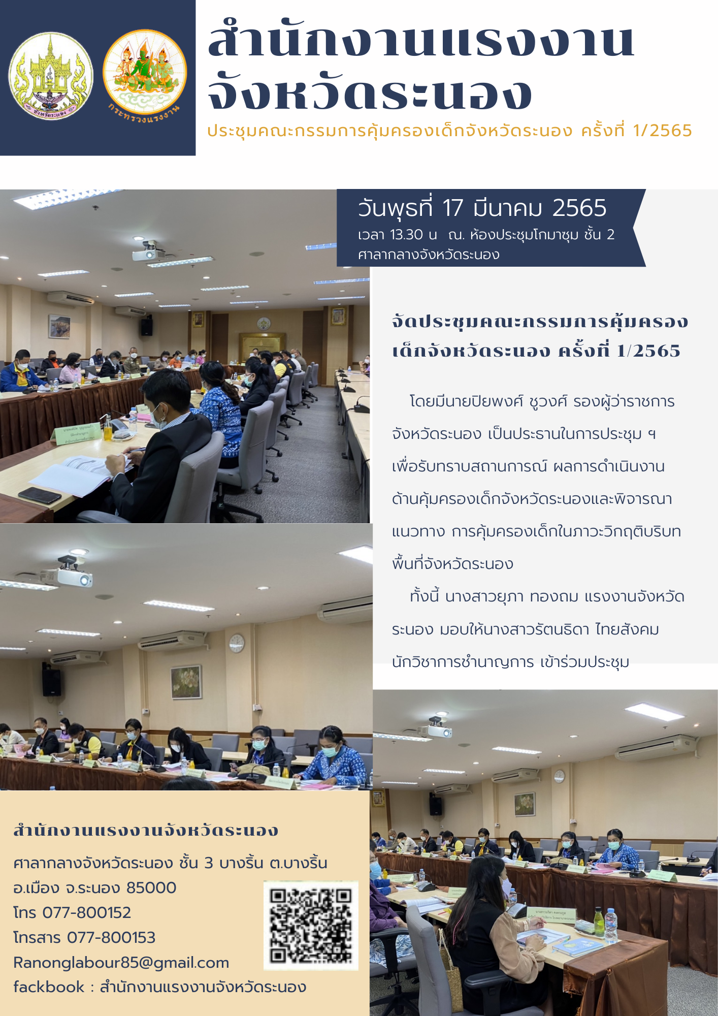 การประชุมคณะกรรมการคุ้มครองเด็กจังหวัดระนอง ครั้งที่ 1/2565