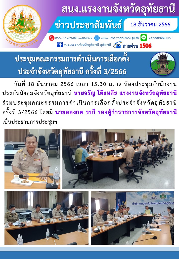 สรจ.อุทัยธานี ร่วมประชุมคณะกรรมการดำเนินการเลือกตั้ง ประจำจังหวัดอุทัยธานี ครั้งที่ 3/2566