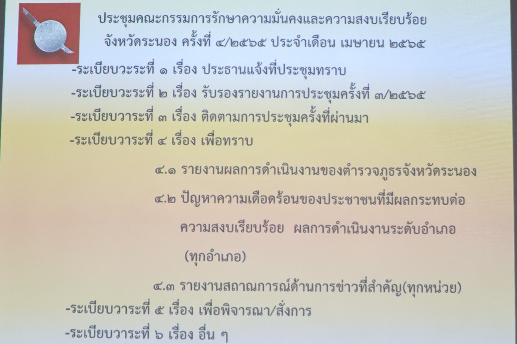 ประชุมคณะกรรมการศูนย์สั่งการชายแดนไทยกับประเทศเพื่อนบ้าน ด้านเมียนมาจังหวัดระนอง ครั้งที่ 4/2565