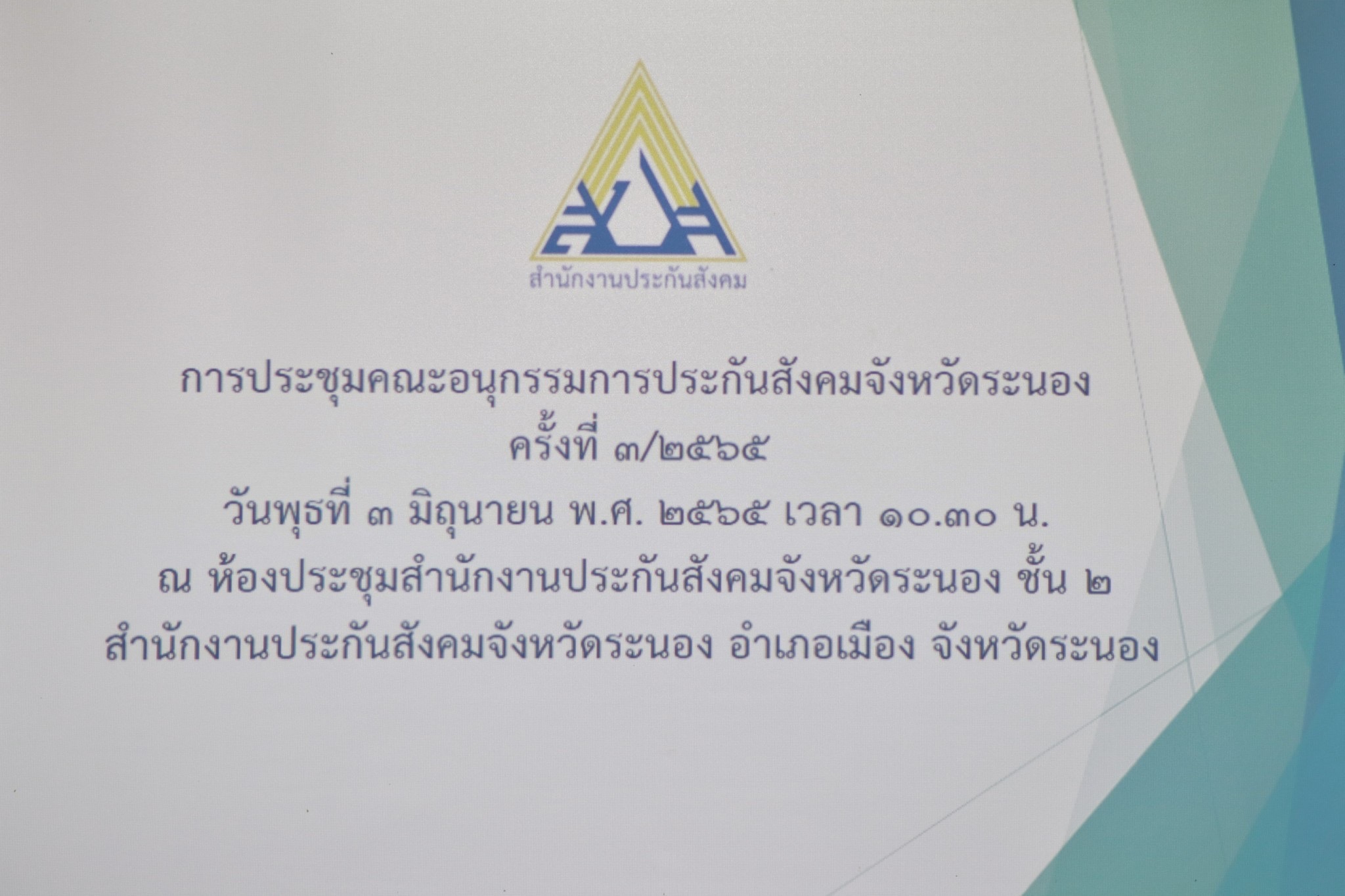 การประชุมคณะอนุกรรมการประกันสังคมจังหวัดระนอง ครั้งที่ 3/2565