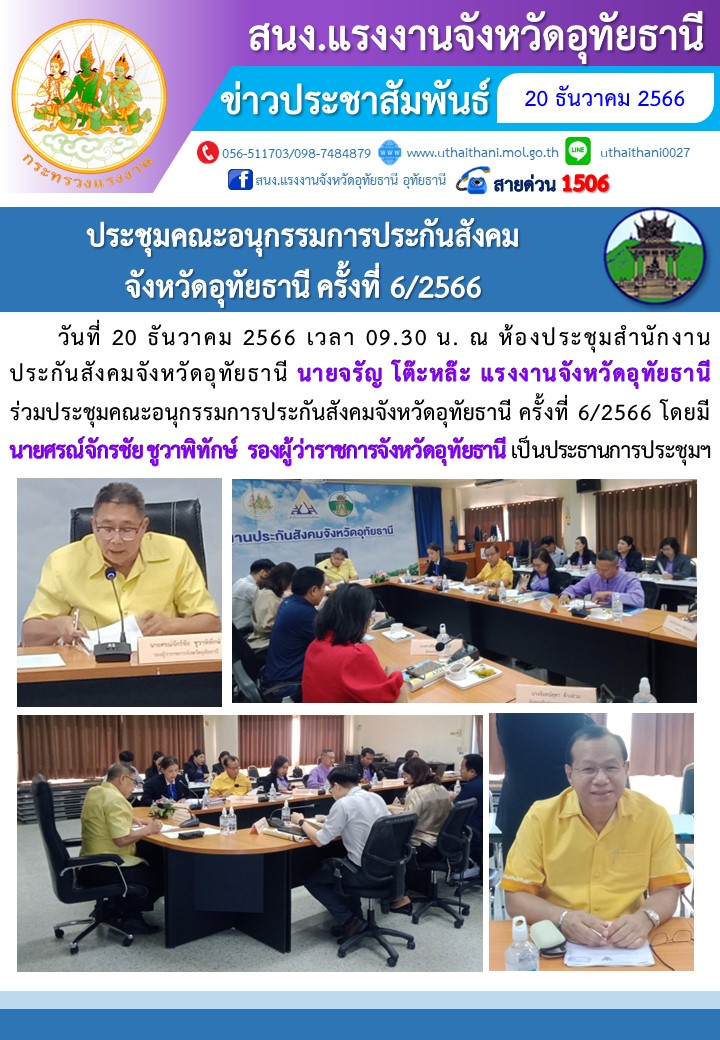 สรจ.อุทัยธานี ร่วมประชุมคณะอนุกรรมการประกันสังคม จังหวัดอุทัยธานี ครั้งที่ 6/2566