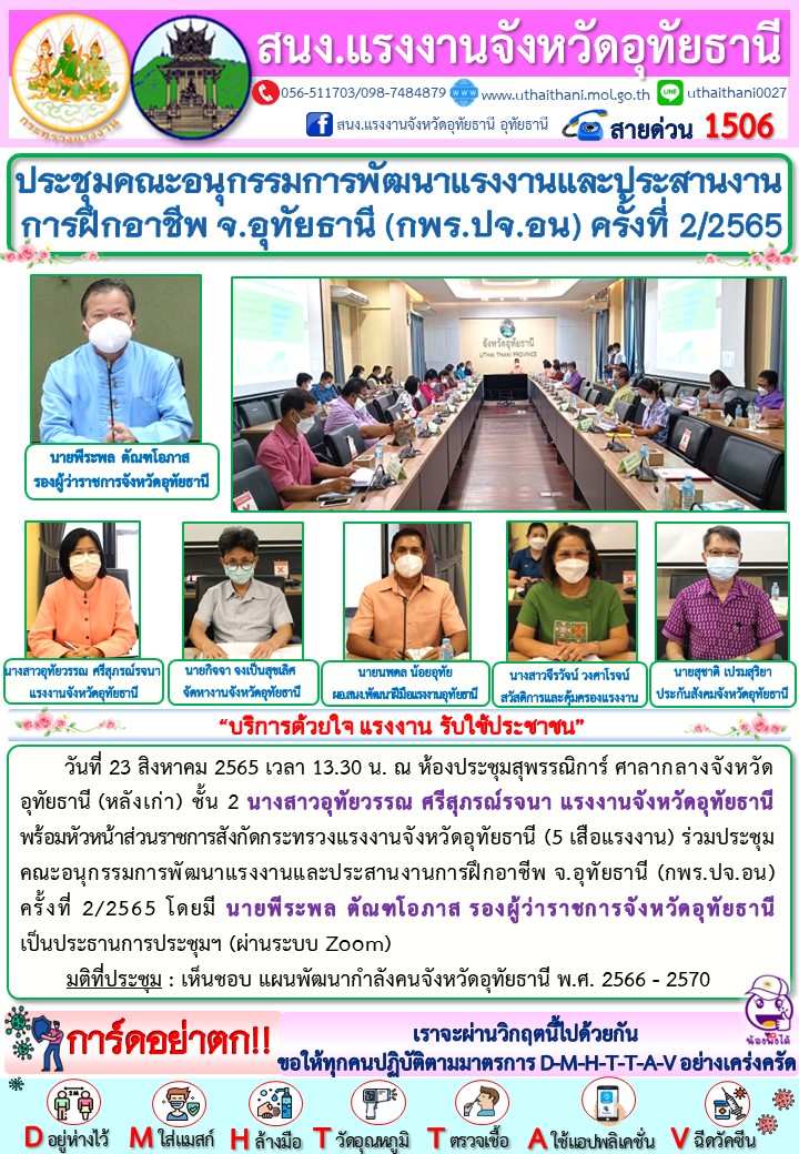 สรจ.อุทัยธานี ประชุมคณะอนุกรรมการพัฒนาแรงงานและประสานงานการฝึกอาชีพ จ.อุทัยธานี (กพร.ปจ.อน.) ครั้งที่ 2/2565