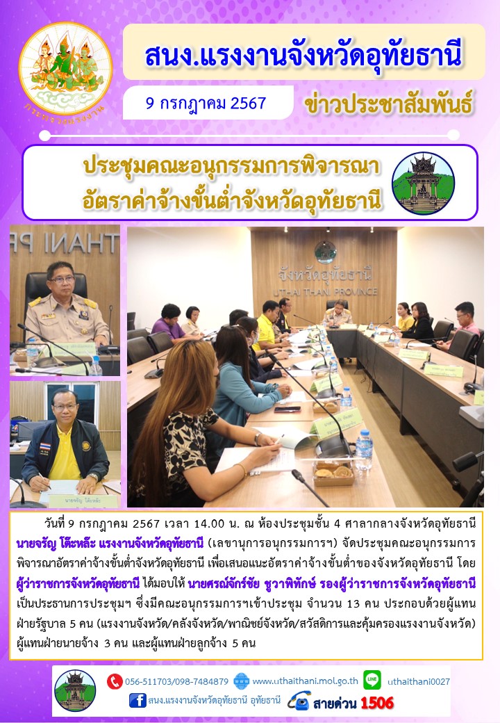 ประชุมคณะอนุกรรมการพิจารณาอัตราค่าจ้างขั้นต่ำจังหวัดอุทัยธานี