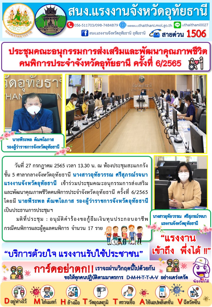 แรงงานจังหวัดอุทัยธานี ร่วมประชุมคณะอนุกรรมการส่งเสริมและพัฒนาคุณภาพชีวิตคนพิการ