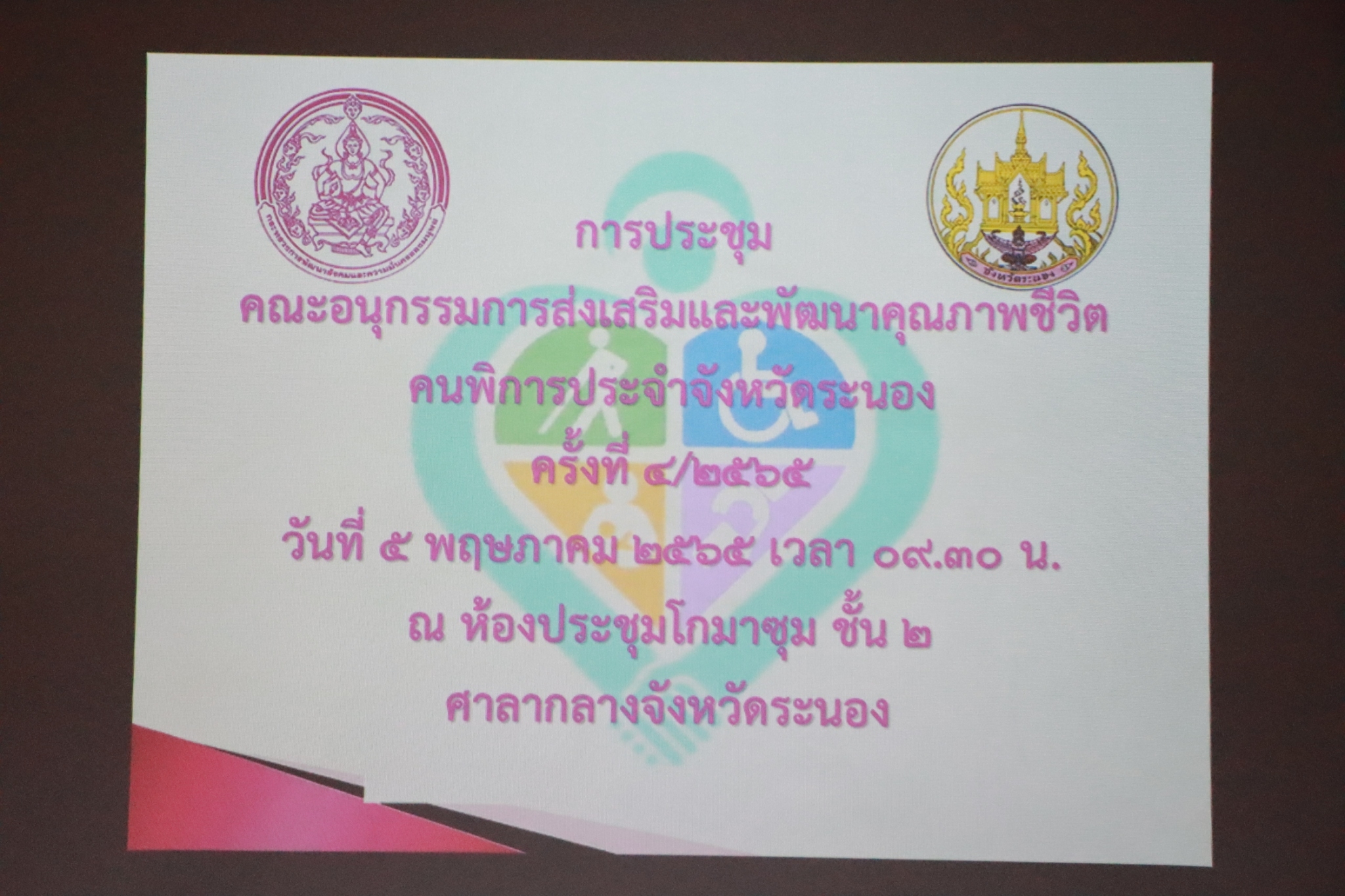 สรจ.ระนอง ร่วมประชุมคณะอนุกรรมการส่งเสริมและพัฒนาคุณภาพชีวิตคนพิการ ประจำจังหวัดระนอง ครั้งที่ 4/2565