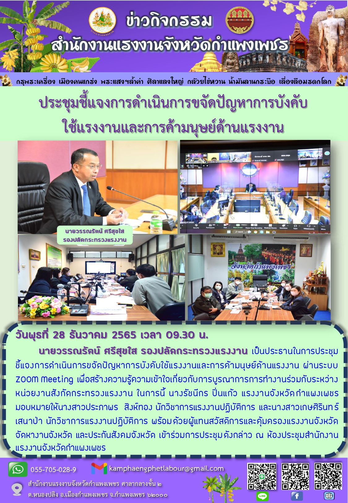 สรจ.กำแพงเพชร ประชุมชี้แจงการดำเนินการขจัดปัญหาการบังคับ ใช้แรงงานและการค้ามนุษย์ด้านแรงงาน