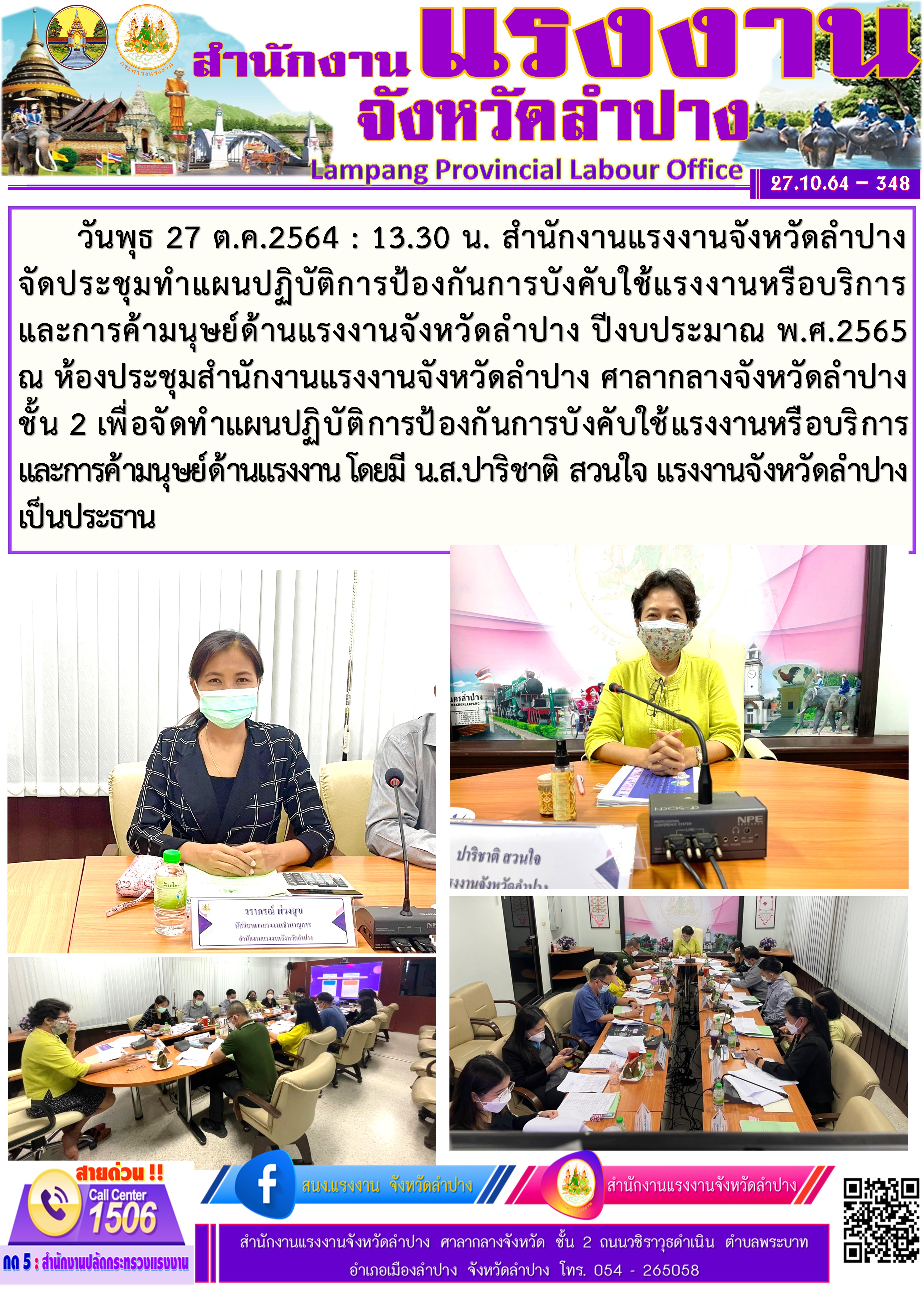 สรจ.ลำปาง ประชุมทำแผนปฏิบัติการป้องกันการบังคับใช้แรงงานหรือบริการ และการค้ามนุษย์ด้านแรงงานจังหวัดลำปาง