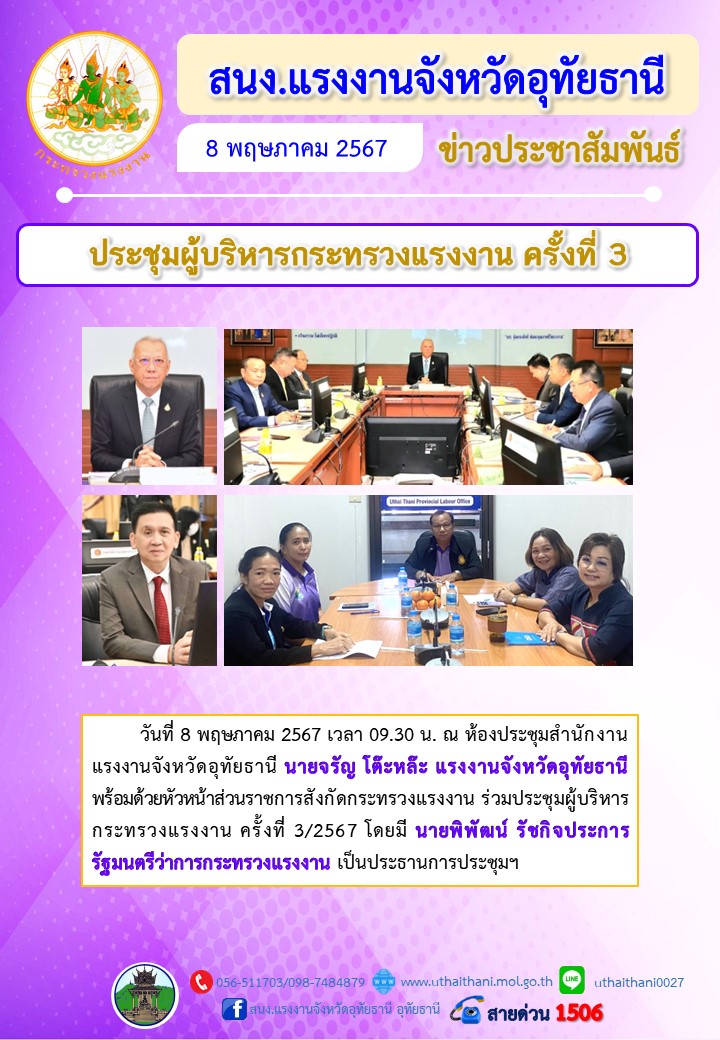 สรจ.อุทัยธานี ประชุมผู้บริหารกระทรวงแรงงาน ครั้งที่ 3
