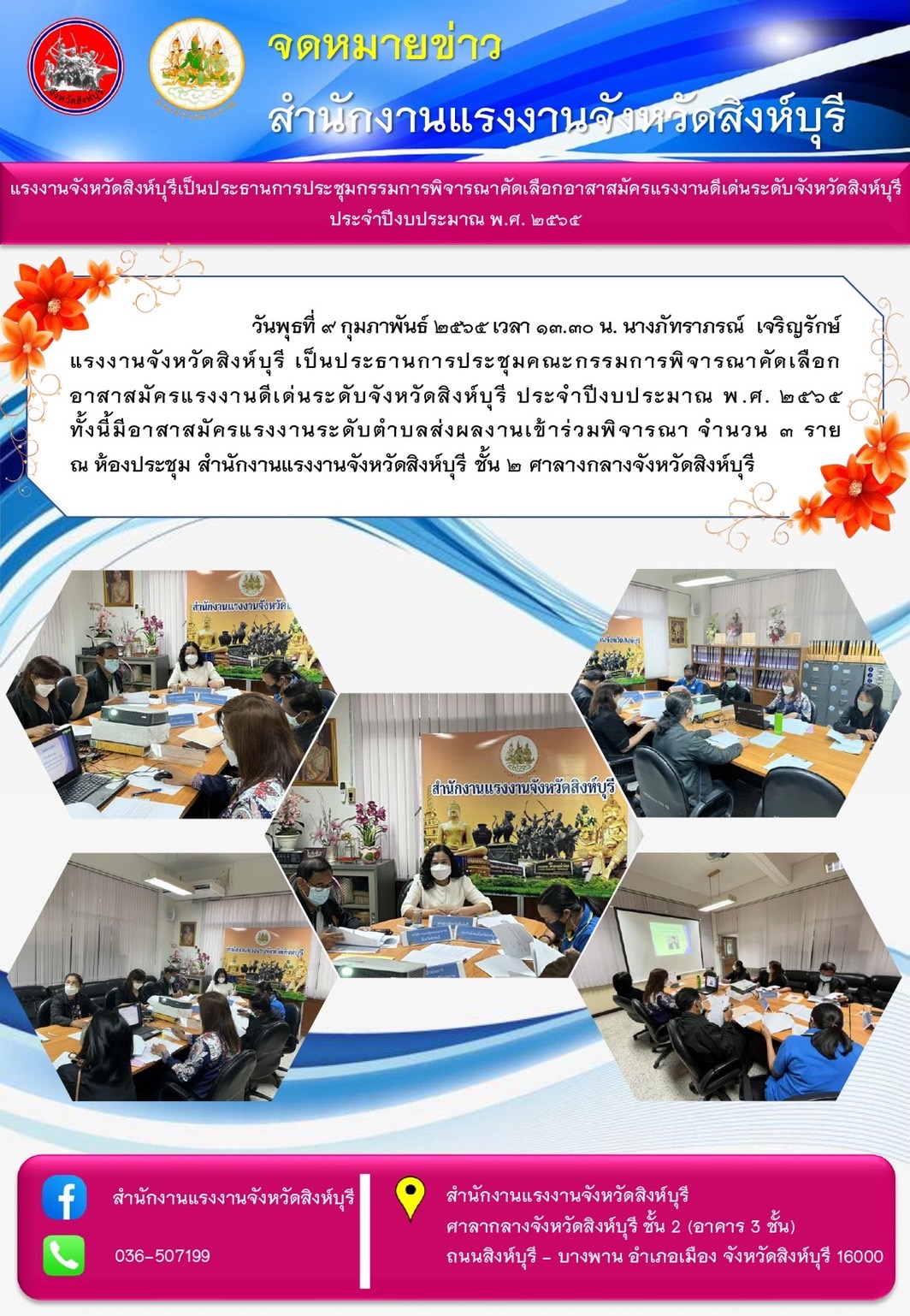 การพิจารณาคัดเลือกอาสาสมัครแรงงานดีเด่นระดับจังหวัดสิงห์บุรี ประจำปีงบประมาณ พ.ศ. 2565