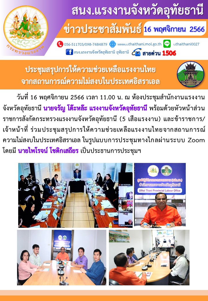 สรจ.อุทัยธานี ร่วมประชุมสรุปการให้ความช่วยเหลือแรงงานไทย จากสถานการณ์ความไม่สงบในประเทศอิสราเอล