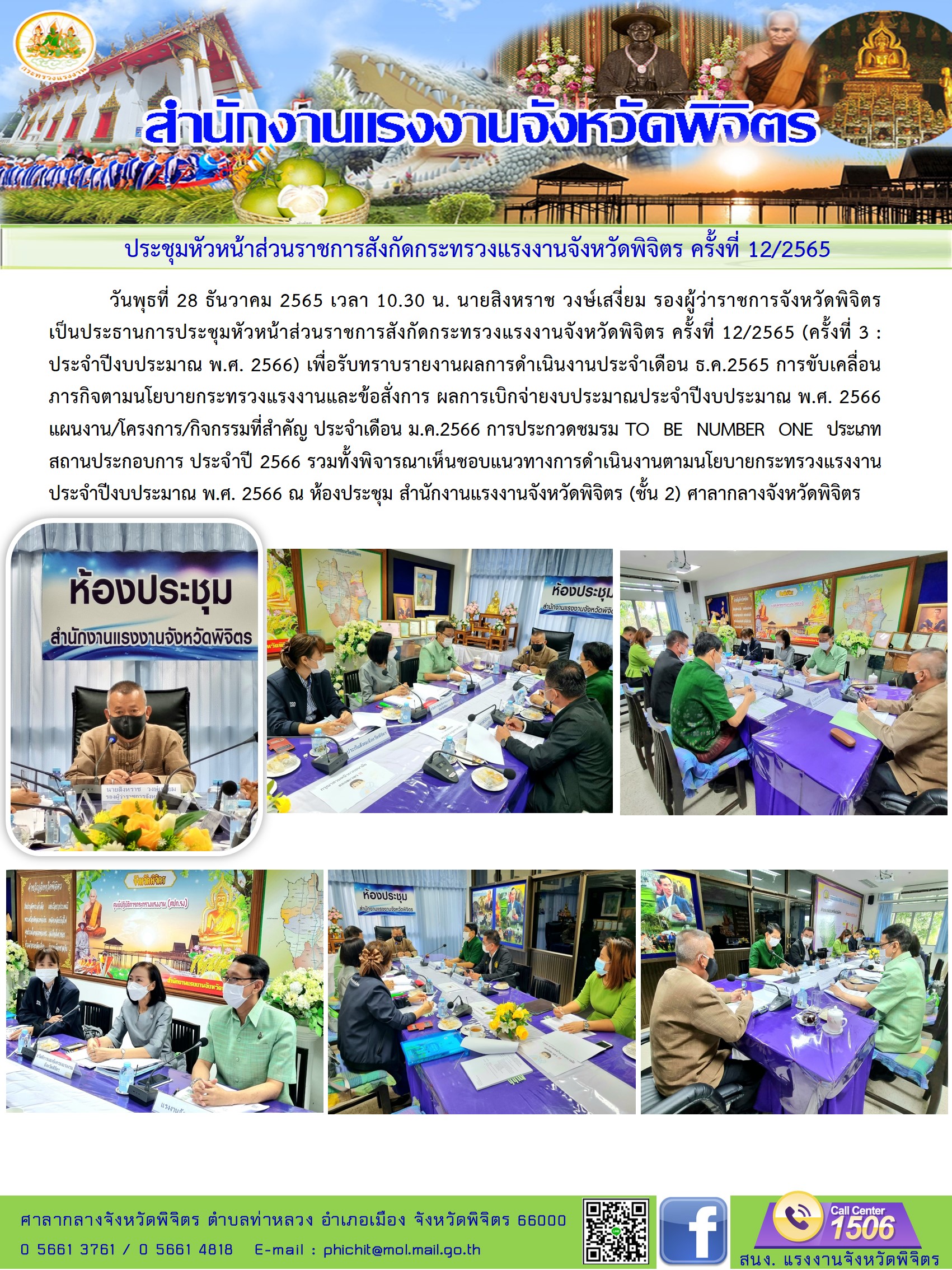 หัวหน้าส่วนราชการสังกัดกระทรวงแรงงานจังหวัดพิจิตร ครั้งที่ 12/2565
