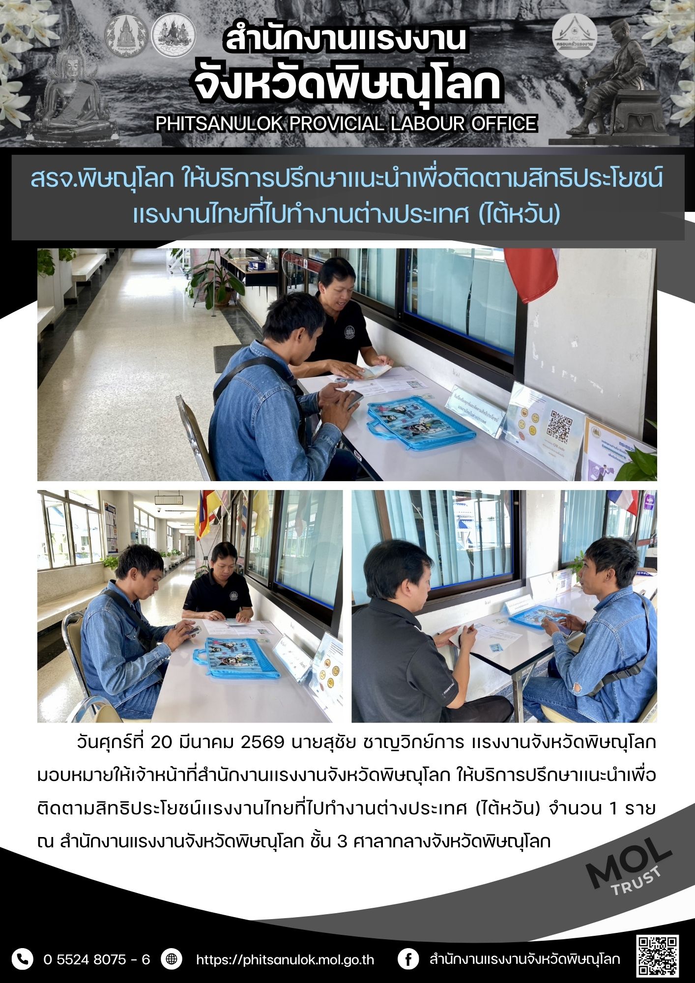 ประชุมหัวหน้าส่วนราชการสังกัดกระทรวงแรงงาน ศูนย์ประสานงานและสนับสนุนเครือข่ายแรงงานนอกระบบ และศูนย์ปฏิบัติการป้องกันการค้ามนุษย์ด้านแรงงาน จังหวัดบุรีรัมย์