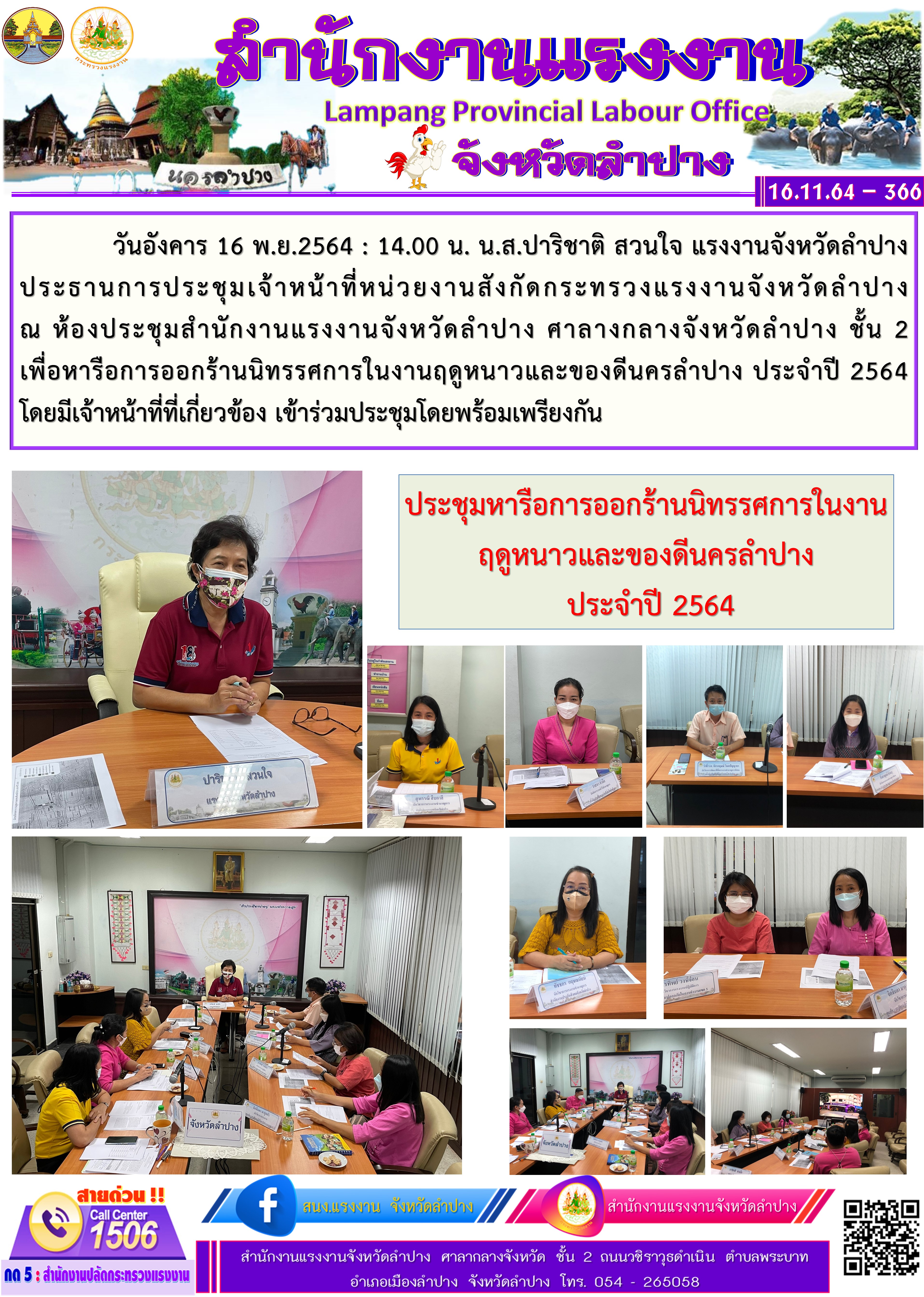 ประชุมหารือการออกร้านนิทรรศการในงานฤดูหนาวและของดีนครลำปาง ประจำปี 2564