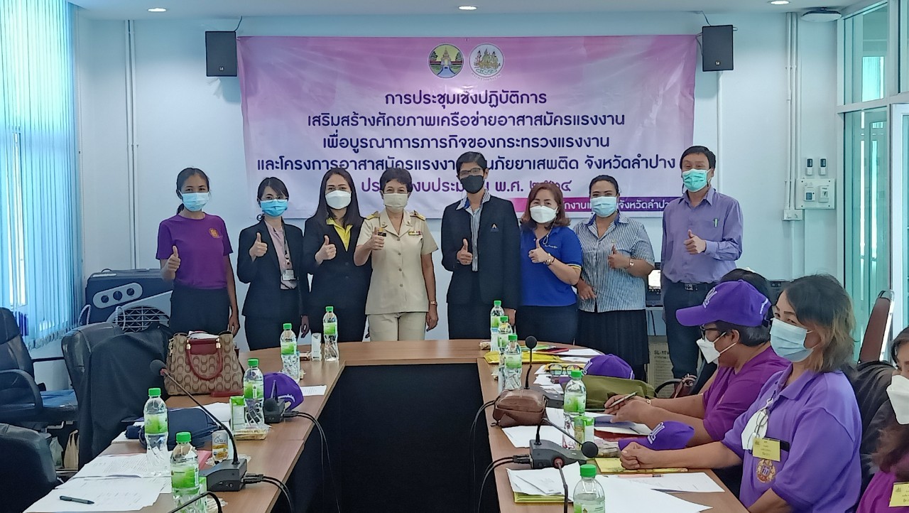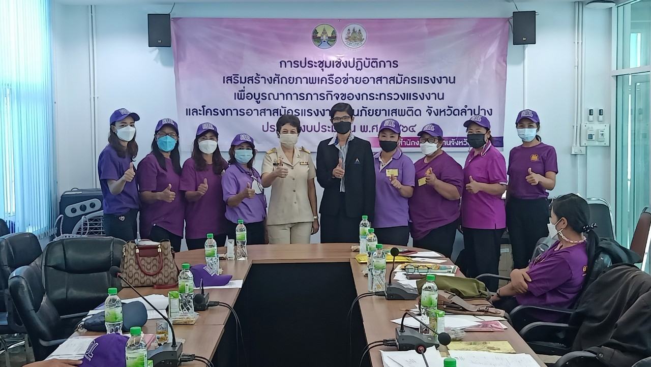 ประชุมเชิงปฏิบัติการเสริมสร้างศักยภาพเครือข่ายอาสาสมัครแรงงานเพื่อบูรณาการภารกิจของกระทรวงแรงงาน และโครงการอาสาสมัครแรงงานต้านภัยยาเสพติด จังหวัดลำปาง ประจำปีงบประมาณ พ.ศ.2564