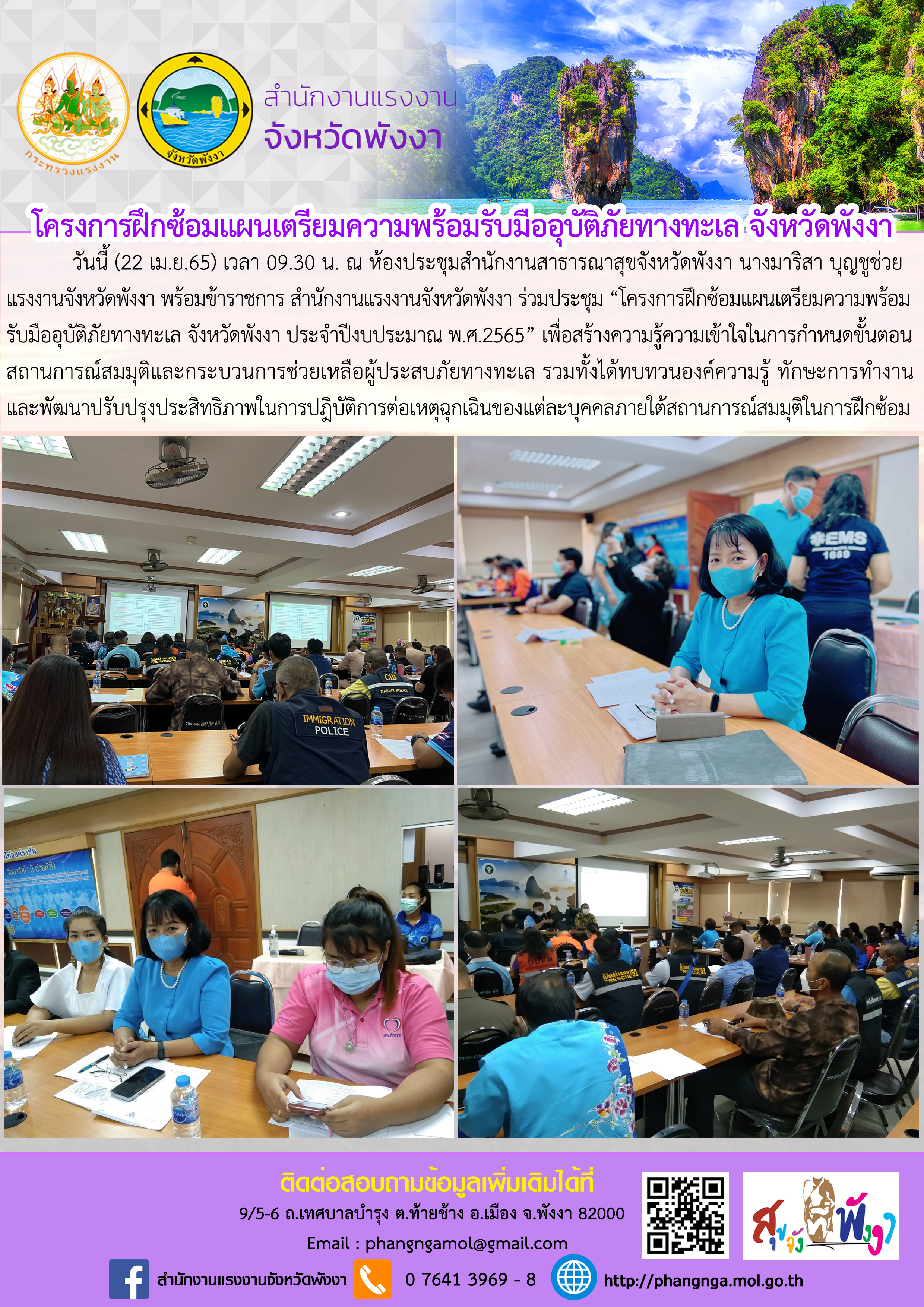 ประชุมโครงการฝึกซ้อมแผนเตรียมความพร้อมรับมืออุบัติภัยทางทะเล จังหวัดพังงา
