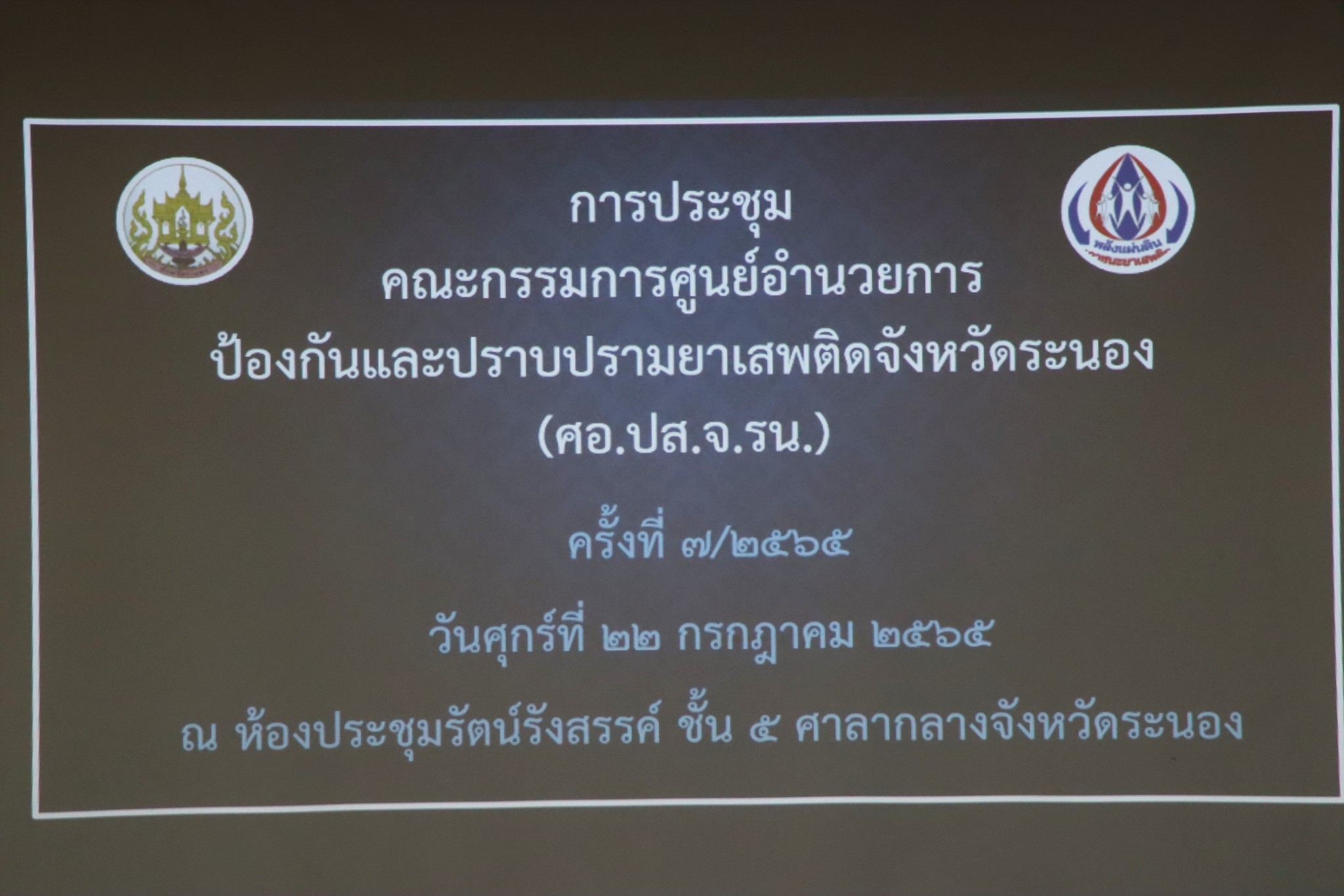 การประชุมคณะกรรมการศูนย์อำนวยการป้องกันและปราบปรามยาเสพติดจังหวัดระนอง ครั้งที่ 7/2565