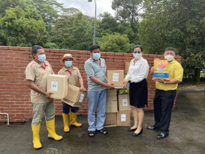นอกจากนี้ สำนักงานแรงงานในประเทศสิงคโปร์ได้มอบข้าวสาร อาหารแห้ง และสิ่งของจำเป็นให้แก่พี่น้องแรงงานไทยในสิงคโปร์ที่มาติดต่อยื่นเรื่องต่าง ๆที่ฝ่ายกงสุลและสำนักงานแรงงานในประเทศสิงคโปร์ ตลอดเดือนมกราคม 2565 เพื่อช่วยบรรเทาความเดือดร้อนในความยากลำบากในการออกจากที่พักเพื่อหาซื้อข้าวของ เครื่องใช้ที่จำเป็นของแรงงานไทยในหอพัก ทั้งนี้ ในปีงบประมาณ 2565 ตั้งแต่เดือนตุลาคม 2564 ถึงเดือนมกราคม 2565 สำนักงานแรงงานในประเทศสิงคโปร์ได้ออกเยี่ยมแรงงานไทยในสิงคโปร์มาแล้วจำนวน 9 ครั้ง มอบสิ่งของช่วยเหลือแรงงานไทย จำนวน 754 ชุด