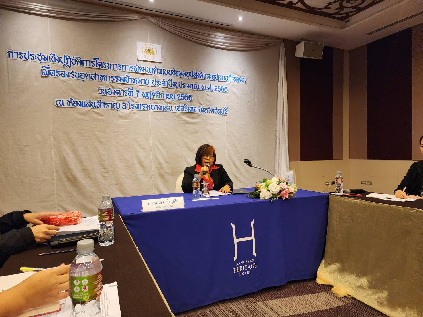 วันที่ 7 พฤศจิกายน 2566 นางนภสร ทุ่งสุกใส ที่ปรึกษาวิชาการแรงงาน เป็นประธานการประชุมเชิงปฏิบัติการโครงการ การพัฒนาตัวแบบข้อมูลอุปสงค์และอุปทานกำลังคน เพื่อรองรับอุตสาหกรรมเป้าหมาย ประจำปีงบประมาณ 2566 ณ ห้องแสนสำราญ 3 โรงแรมบางแสน เฮอริเทจ จังหวัดชลบุรี