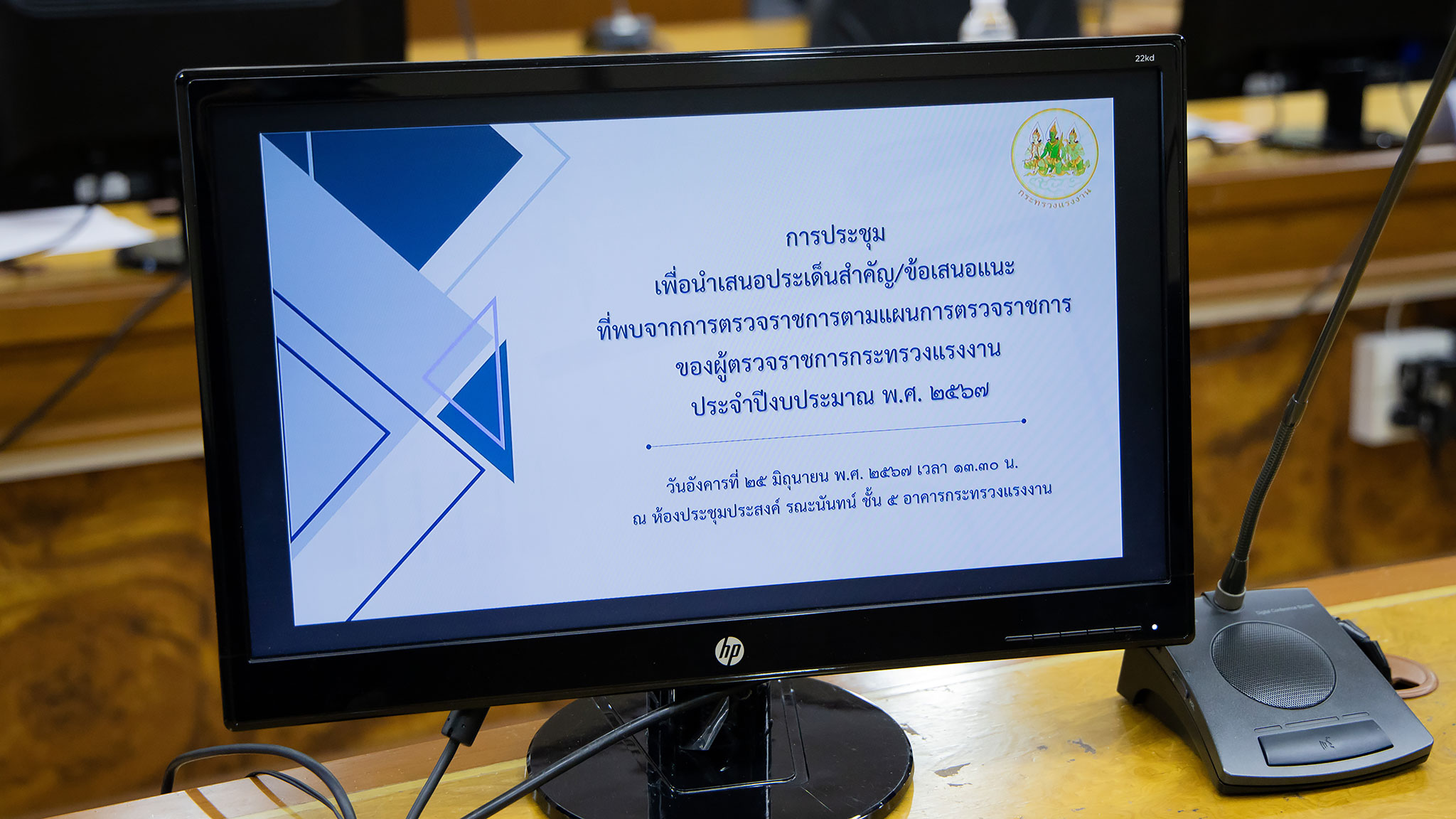 วันที่ 25 มิถุนายน 2567 เวลา 13.30 น. นายไพโรจน์ โชติกเสถียร ปลัดกระทรวงแรงงาน เป็นประธานการประชุมเพื่อรับฟังการนำเสนอประเด็นสำคัญ ข้อเสนอแนะ ที่พบจากการตรวจราชการตามแผนการตรวจราชการของผู้ตรวจราชการกระทรวงแรงงาน ประจำปีงบประมาณ พ.ศ. 2567 โดยมี นายนันทชัย ปัญญาสุรฤทธิ์ ผู้ตรวจราชการกระทรวงแรงงาน นายสมพจน์ กวางแก้ว ผู้ตรวจราชการกระทรวงแรงงาน นางสาวบุณยวีร์ ไขว้พันธุ์ ผู้ตรวจราชการกระทรวงแรงงาน นางมารศรี ใจรังษี ผู้ตรวจราชการกระทรวงแรงงาน นายสันติ นันตสุวรรณ ผู้ตรวจราชการกระทรวงแรงงาน พร้อมด้วยเจ้าหน้าที่หน่วยงานที่เกี่ยวข้อง เข้าร่วมการประชุม ณ ห้องประชุมประสงค์ รณะนันทน์ ชั้น 5 อาคารกระทรวงแรงงาน
