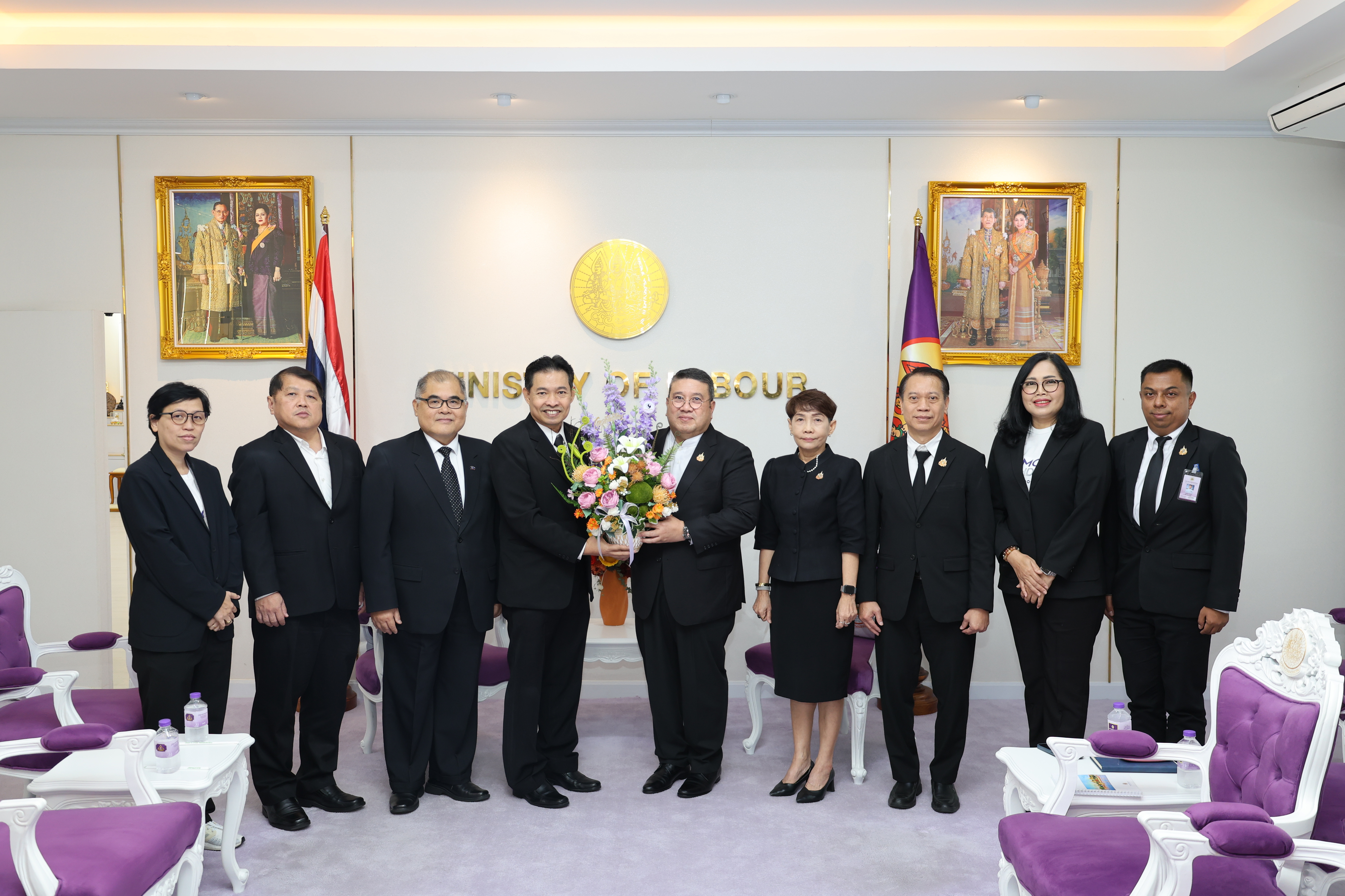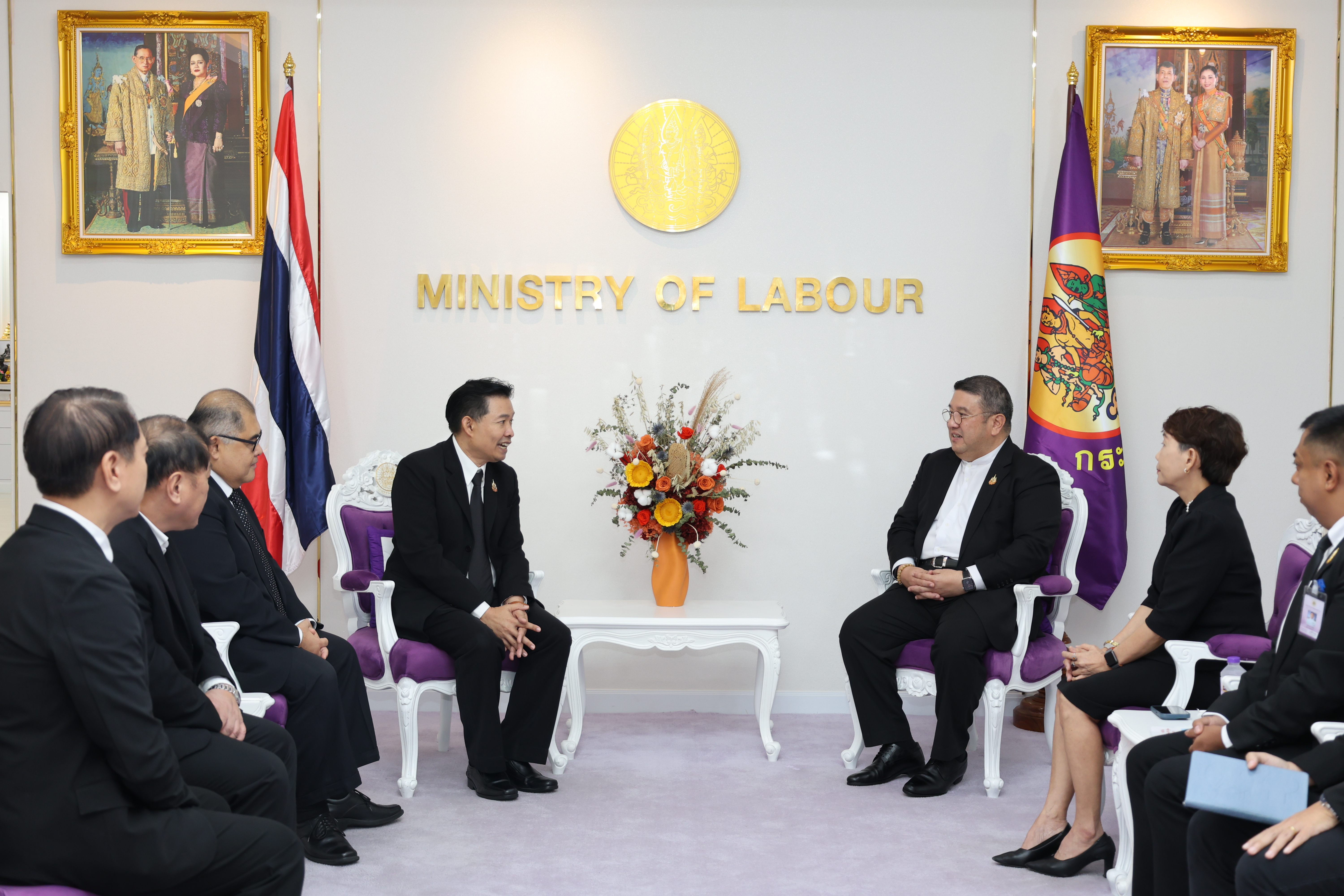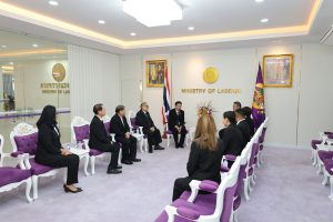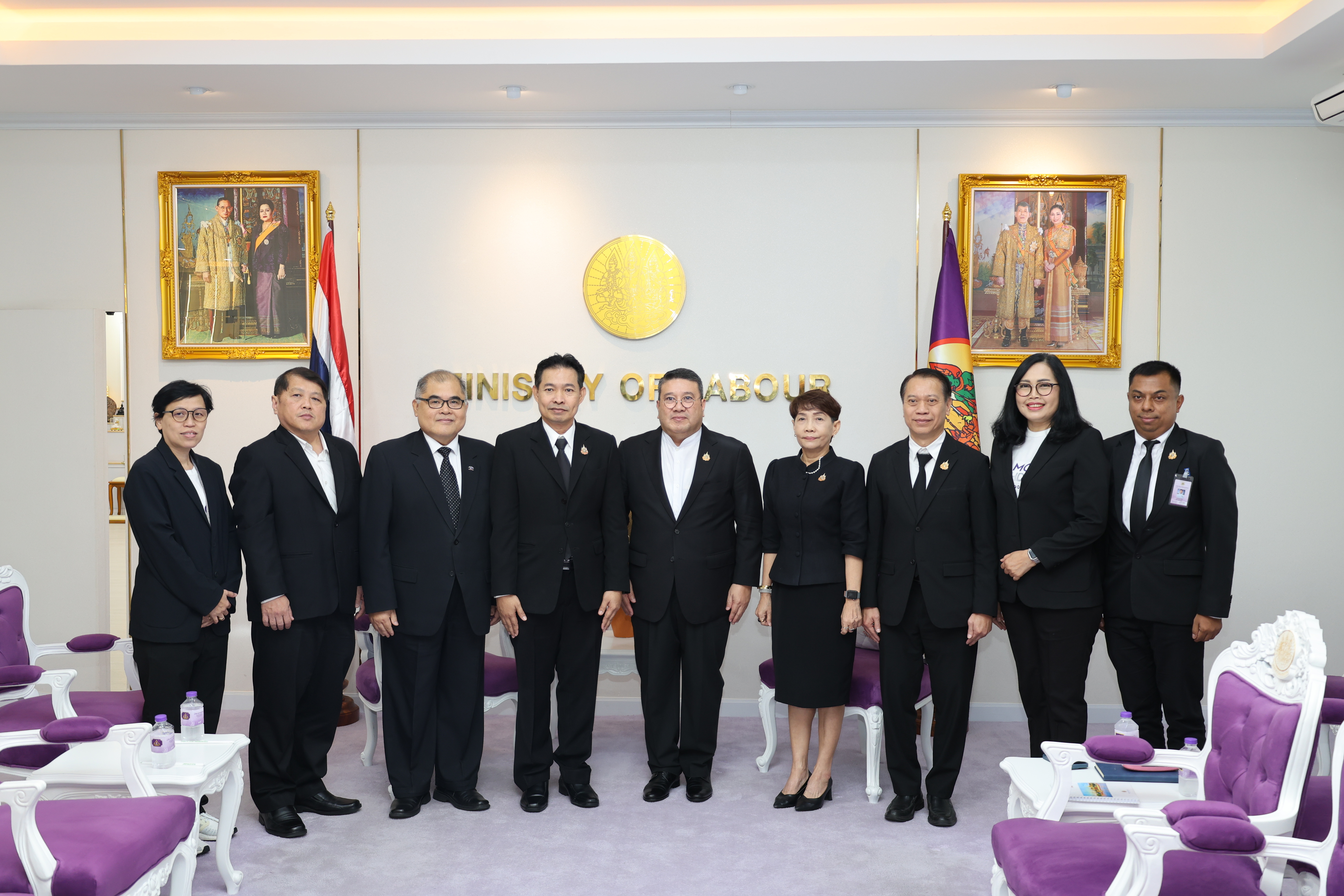 วันที่ 7 พฤศจิกายน 2568 เวลา 11.30 น. พันตำรวจโท วรรณพงษ์ คชรักษ์ ปลัดกระทรวงแรงงาน ให้การต้อนรับ นายสมหมาย สุวรรณวงษ์ รองกรรมการผู้อำนวยการใหญ่ สายงานการตลาดและขาย รักษาการในตำแหน่งผู้อำนวยการใหญ่ บริษัท อสมท.จำกัด (มหาชน) และคณะผู้บริหาร ช่อง 9 MCOT HD ในโอกาสเข้าพบเพื่อหารือแนวทางการประชาสัมพันธ์ตามนโยบายกระทรวงแรงงาน โดยมี นางสาวกรจิรัฏฐ์ พงจันทร์ศธร ผู้ช่วยปลัดกระทรวงแรงงาน และกองเผยแพร่และประชาสัมพันธ์ ร่วมให้การต้อนรับและหารือ ณ ห้องรับรองปลัดกระทรวงแรงงาน ชั้น 7 อาคารกระทรวงแรงงาน