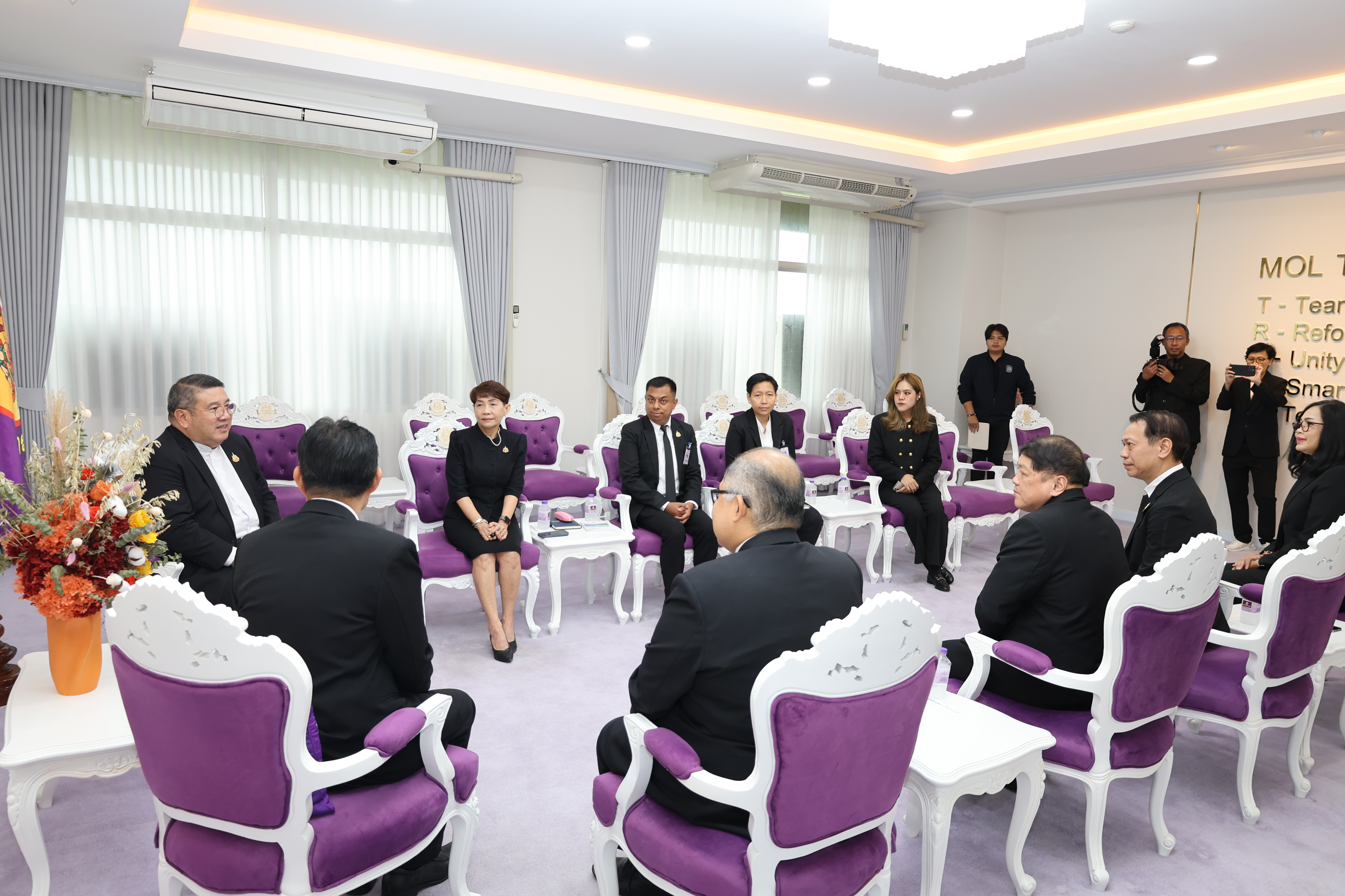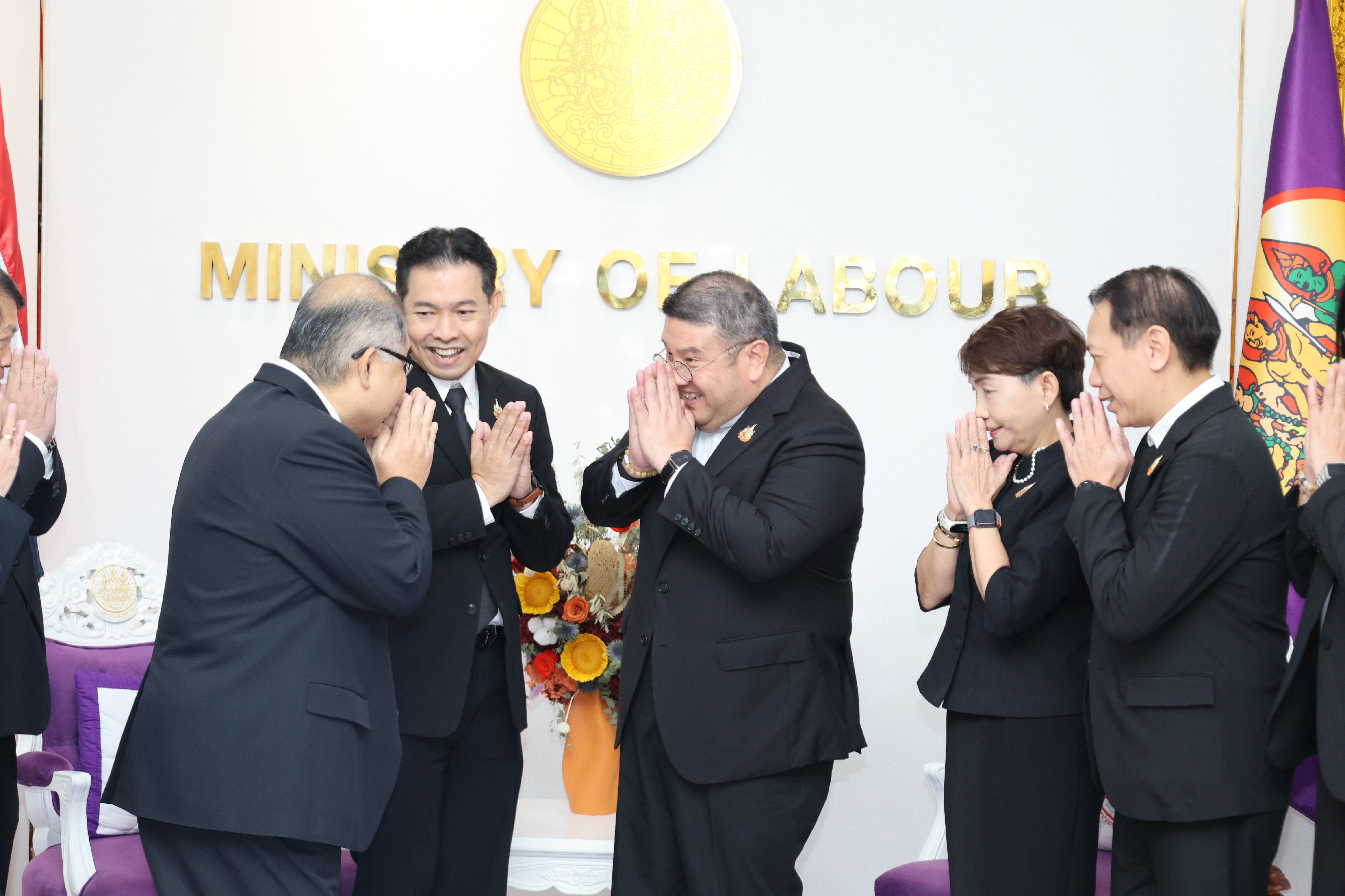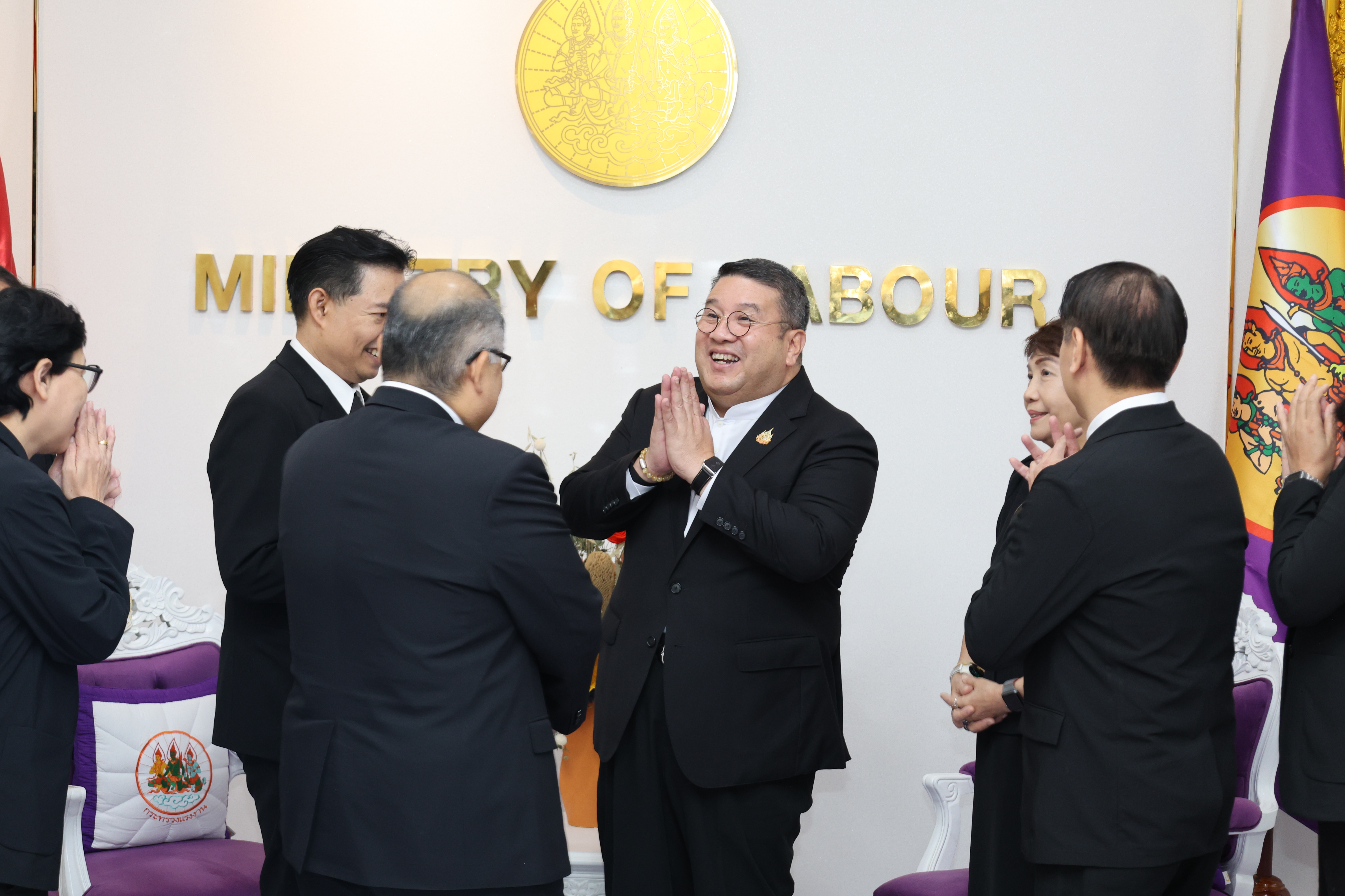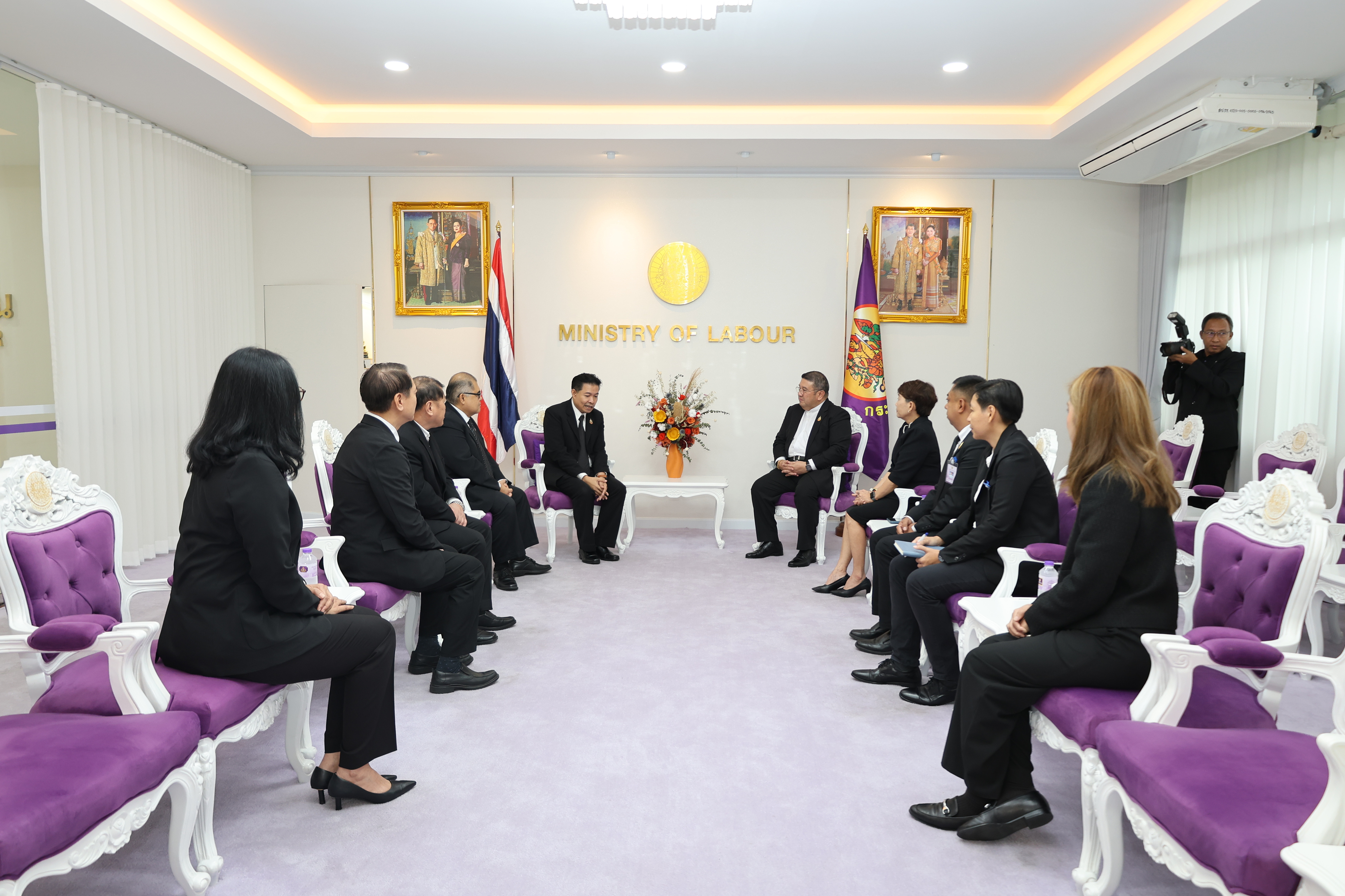 วันที่ 7 พฤศจิกายน 2568 เวลา 11.30 น. พันตำรวจโท วรรณพงษ์ คชรักษ์ ปลัดกระทรวงแรงงาน ให้การต้อนรับ นายสมหมาย สุวรรณวงษ์ รองกรรมการผู้อำนวยการใหญ่ สายงานการตลาดและขาย รักษาการในตำแหน่งผู้อำนวยการใหญ่ บริษัท อสมท.จำกัด (มหาชน) และคณะผู้บริหาร ช่อง 9 MCOT HD ในโอกาสเข้าพบเพื่อหารือแนวทางการประชาสัมพันธ์ตามนโยบายกระทรวงแรงงาน โดยมี นางสาวกรจิรัฏฐ์ พงจันทร์ศธร ผู้ช่วยปลัดกระทรวงแรงงาน และกองเผยแพร่และประชาสัมพันธ์ ร่วมให้การต้อนรับและหารือ ณ ห้องรับรองปลัดกระทรวงแรงงาน ชั้น 7 อาคารกระทรวงแรงงาน