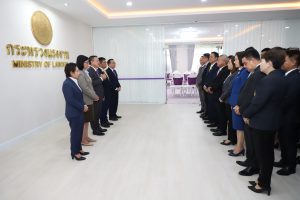 วันที่ 3 เมษายน 2568 เวลา 09.00 น. นายบุญสงค์ ทัพชัยยุทธ์ ปลัดกระทรวงแรงงาน นำคณะผู้บริหารมอบแจกันดอกไม้ แสดงความยินดีกับ นายสันติ นันตสุวรรณ รองปลัดกระทรวงแรงงาน นายเกริกไกร นาสมยนต์ ที่ปรึกษากฎหมาย นางสาวกาญจนา พูลแก้ว ผู้ตรวจราชการกระทรวงแรงงาน ว่าที่ร้อยตรี สมศักดิ์ พรหมดำ ผู้ตรวจราชการกระทรวงแรงงาน และนางสาวจีระภา บุญรัตน์ ผู้ตรวจราชการกระทรวงแรงงาน เนื่องในโอกาสมีพระบรมราชโองการโปรดเกล้าโปรดกระหม่อมให้ดำรงตำแหน่งที่ได้รับการแต่งตั้ง โดยมี นางสาวบุปผา เรืองสุด รองปลัดกระทรวงแรงงาน นายสมาสภ์ ปัทมะสุคนธ์ รองปลัดกระทรวงแรงงาน นายสมชาย มรกตศรีวรรณ อธิบดีกรมการจัดหางาน เรือเอก สาโรจน์ คมคาย อธิบดีกรมสวัสดิการและคุ้มครองแรงงาน นางมารศรี ใจรังษี เลขาธิการสำนักงานประกันสังคม นายนันทชัย ปัญญาสุรฤทธิ์ ผู้อำนวยการ สสปท. นางสาวกรจิรัฏฐ์ พงจันทร์ศธร ผู้ช่วยปลัดกระทรวงแรงงาน นายศักดินาถ สนธิศักดิ์โยธิน ผู้ช่วยปลัดกระทรวงแรงงาน และ ผู้บริหาร ข้าราชการ และเจ้าหน้าที่กระทรวงแรงงาน ร่วมแสดงความยินดี ณ บริเวณห้องปฏิบัติราชการปลัดกระทรวงแรงงาน ชั้น 7 อาคารกระทรวงแรงงาน