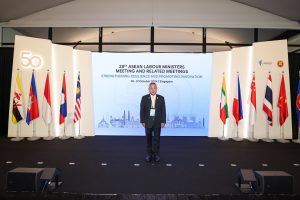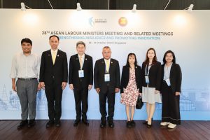 วันที่ 28 ตุลาคม 2567 เวลา 09.00 น.ตามเวลาท้องถิ่นของสาธารณรัฐสิงคโปร์ ซึ่งเร็วกว่าประเทศไทย 1 ชั่วโมง นายพิพัฒน์ รัชกิจประการ รัฐมนตรีว่าการกระทรวงแรงงาน มอบหมายให้ นายบุญสงค์ ทัพชัยยุทธ์ ปลัดกระทรวงแรงงาน ประธานร่วมประชุมปลัดแรงงานอาเซียน (SLOM) ในการประชุมเจ้าหน้าที่อาวุโสแรงงานอาเซียน ครั้งที่ 20 (20th ASEAN Senior Labour Officials Meeting : 20th SLOM) ครั้งที่ 20 โดยมี นายศักดินาถ สนธิศักดิ์โยธิน ผู้ช่วยปลัดกระทรวงแรงงาน นายวุฒิศักดิ์ ปฐมศาสตร์ อัครราชทูตที่ปรึกษา (ฝ่ายแรงงาน) สำนักงานแรงงานในประเทศสิงคโปร์ และคณะ เข้าร่วมประชุม ณ โรงแรม The Ritz Carlton Millenia สาธารณรัฐสิงคโปร์
