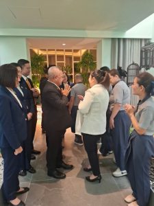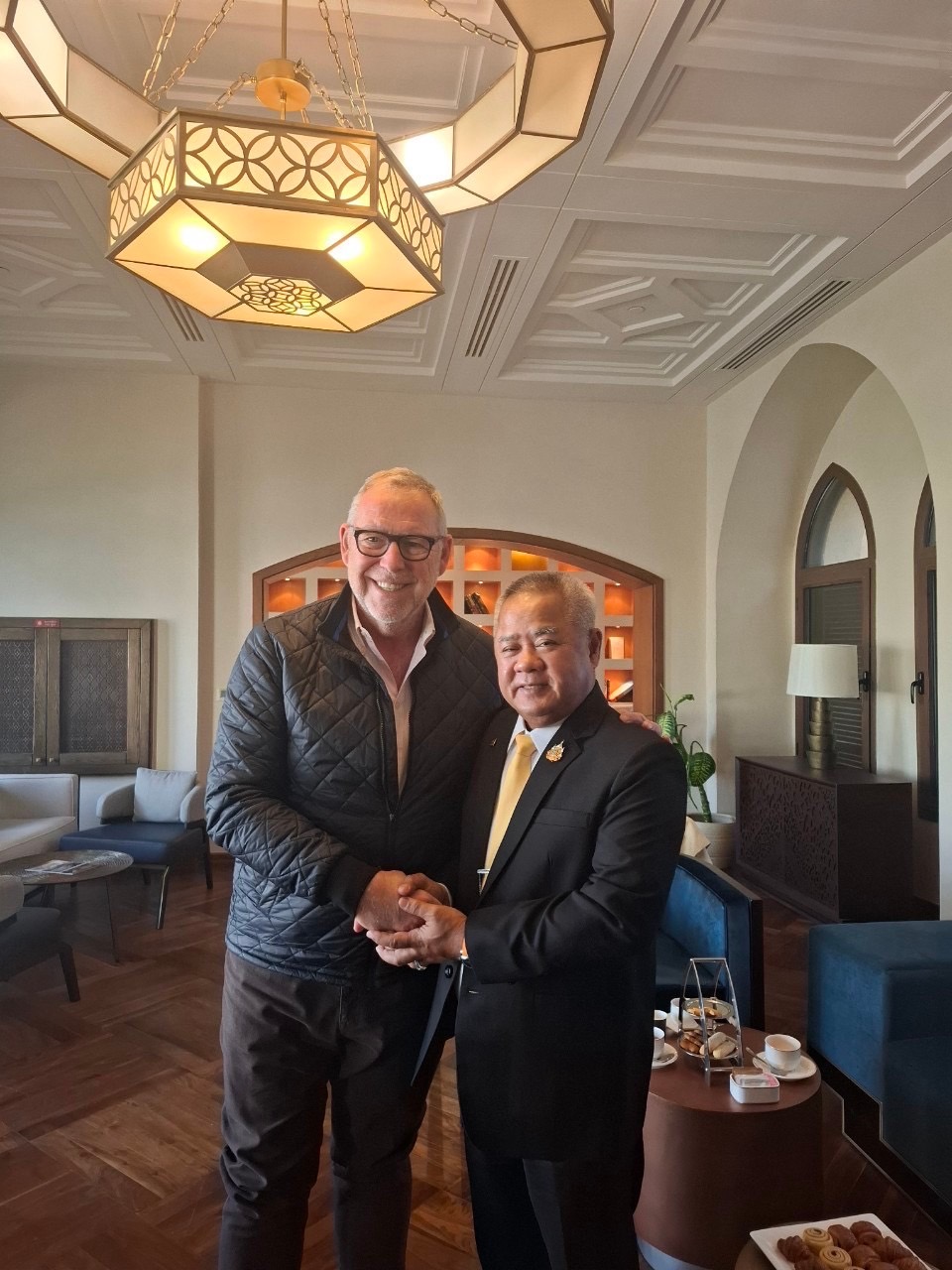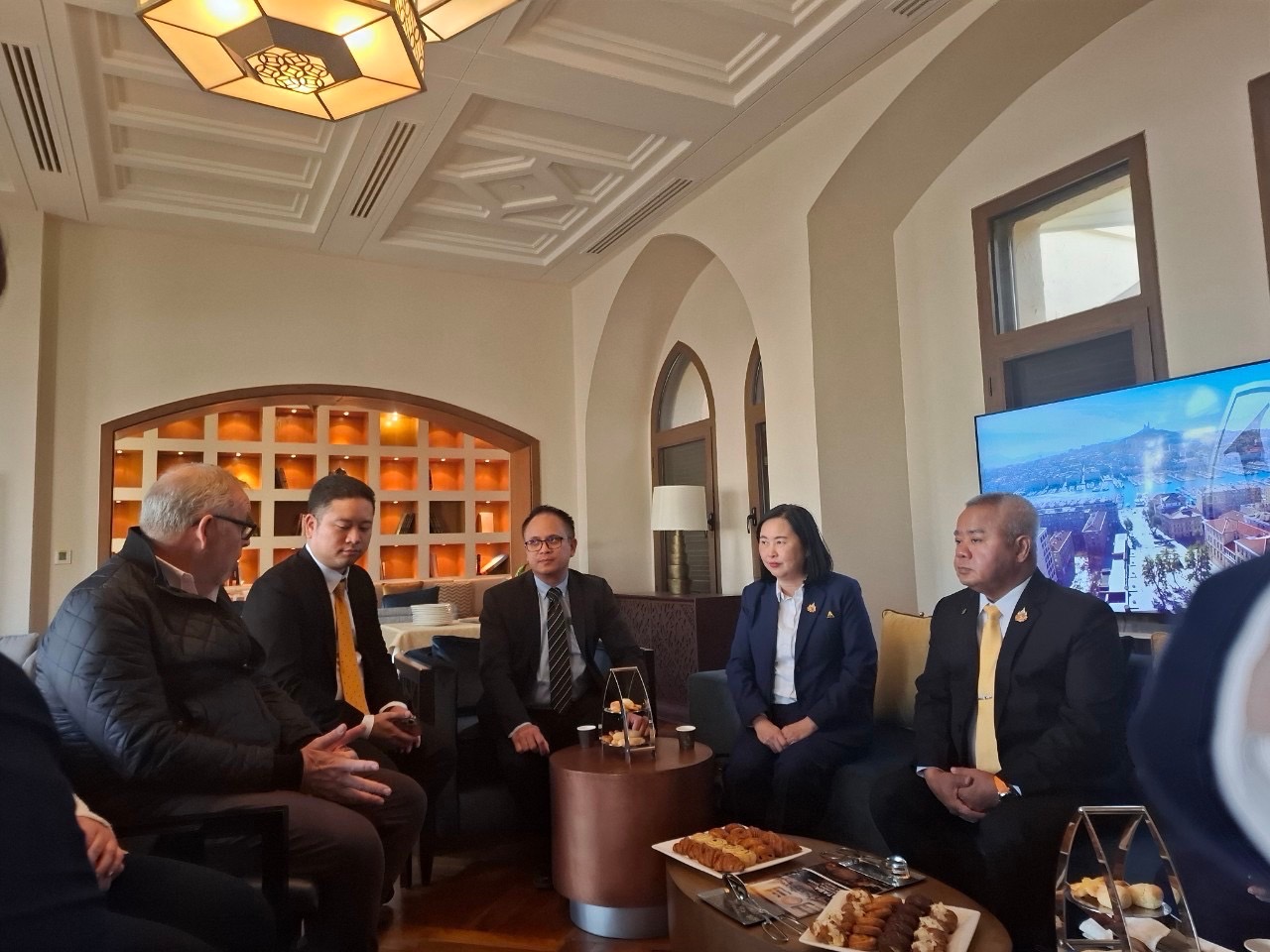 วันที่ 3 ธันวาคม 2567 เวลา 15.00 น. ตามเวลาท้องถิ่นของประเทศซาอุดีอาระเบีย (ซึ่งช้ากว่าเวลาประเทศไทย 4 ชั่วโมง) นายบุญสงค์ ทัพชัยยุทธ์ ปลัดกระทรวงแรงงาน พร้อมด้วย นางมารศรี ใจรังษี เลขาธิการสำนักงานประกันสังคม นางสาวนันทินี ทรัพย์ศิริ ที่ปรึกษาด้านประสิทธิภาพ นายธนิทธิ์ ลอยพิมาย อัครราชทูตที่ปรึกษา (ฝ่ายแรงงาน) และคณะ ร่วมเจรจาหารือกับ Mr. Marc reissinger ผู้บริหารโรงแรม Inter Continental Durrat al Riyadh Resort & Spa ณ โรงแรม Inter Continental Durrat al Riyadh Resort & Spa กรุงริยาด ประเทศซาอุดีอาระเบีย ซึ่งโรงแรมดังกล่าวเป็นสปาระดับพรีเมี่ยม ที่มีความต้องการจ้างแรงงานไทยมาทำงานที่โรงแรม ในตำแหน่งพนักงานนวด แม่บ้าน พ่อครัว และบริกร หลายตำแหน่ง ทั้งนี้ จากการหารือดังกล่าวกระทรวงแรงงานจะคัดเลือกแรงงานไทยที่มีทักษะตรงตามความต้องการและจัดส่งแรงงานไทยไปทำงานต่อไป