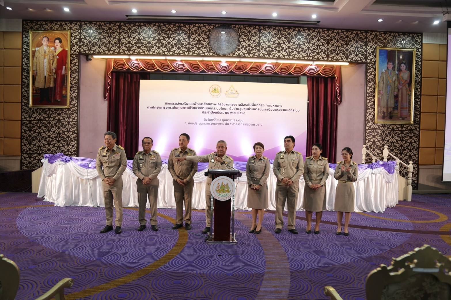 วันที่ 24 กุมภาพันธ์ 2568 นายบุญสงค์ ทัพชัยยุทธ์ ปลัดกระทรวงแรงงาน บรรยายพิเศษหัวข้อ “แนวทางการดำเนินงานตามนโยบายกระทรวงแรงงาน ตามแนวคิด MOL TRUST ยอมรับ เชื่อมั่น ไว้วางใจ ” แก่อาสาสมัครแรงงานกรุงเทพมหานคร ที่เข้าร่วมอบรมกิจกรรมส่งเสริมและพัฒนาศักยภาพเครือข่ายแรงงานอิสระในพื้นที่กรุงเทพมหานคร ตามโครงการยกระดับคุณภาพชีวิตแรงงานนอกระบบ โดยเครือข่ายชุมชนผ่านการขึ้นทะเบียนแรงงานนอกระบบ ประจำปีงบประมาณ พ.ศ.2568 โดยมี นายสมาสภ์ ปัทมะสุคนธ์ รองปลัดกระทรวงแรงงาน นายเกริกไกร นาสมยนต์ ผู้ตรวจราชการกรม กรมสวัสดิการและคุ้มครองแรงงาน รักษาการในตำแหน่งที่ปรึกษากฎหมาย นางสาวกรจิรัฏฐ์ พงจันทร์ศธร ผู้ช่วยปลัดกระทรวงแรงงาน นายศักดินาถ สนธิศักดิ์โยธิน ผู้ช่วยปลัดกระทรวงแรงงาน และผู้บริหารกระทรวงแรงงาน ร่วมเป็นเกียรติ ณ ห้องประชุมกระทรวงแรงงาน ชั้น 5 อาคารกระทรวงแรงงาน โดยปลัดกระทรวงแรงงานได้มอบนโยบายให้อาสาสมัครแรงงานเป็นสื่อกลางในการสื่อสารประเด็น สิทธิประโยชน์ประกันสังคม และการให้ความสำคัญกับการฉีดวัคซีนไข้หวัดใหญ่ แก่ประชาชน
