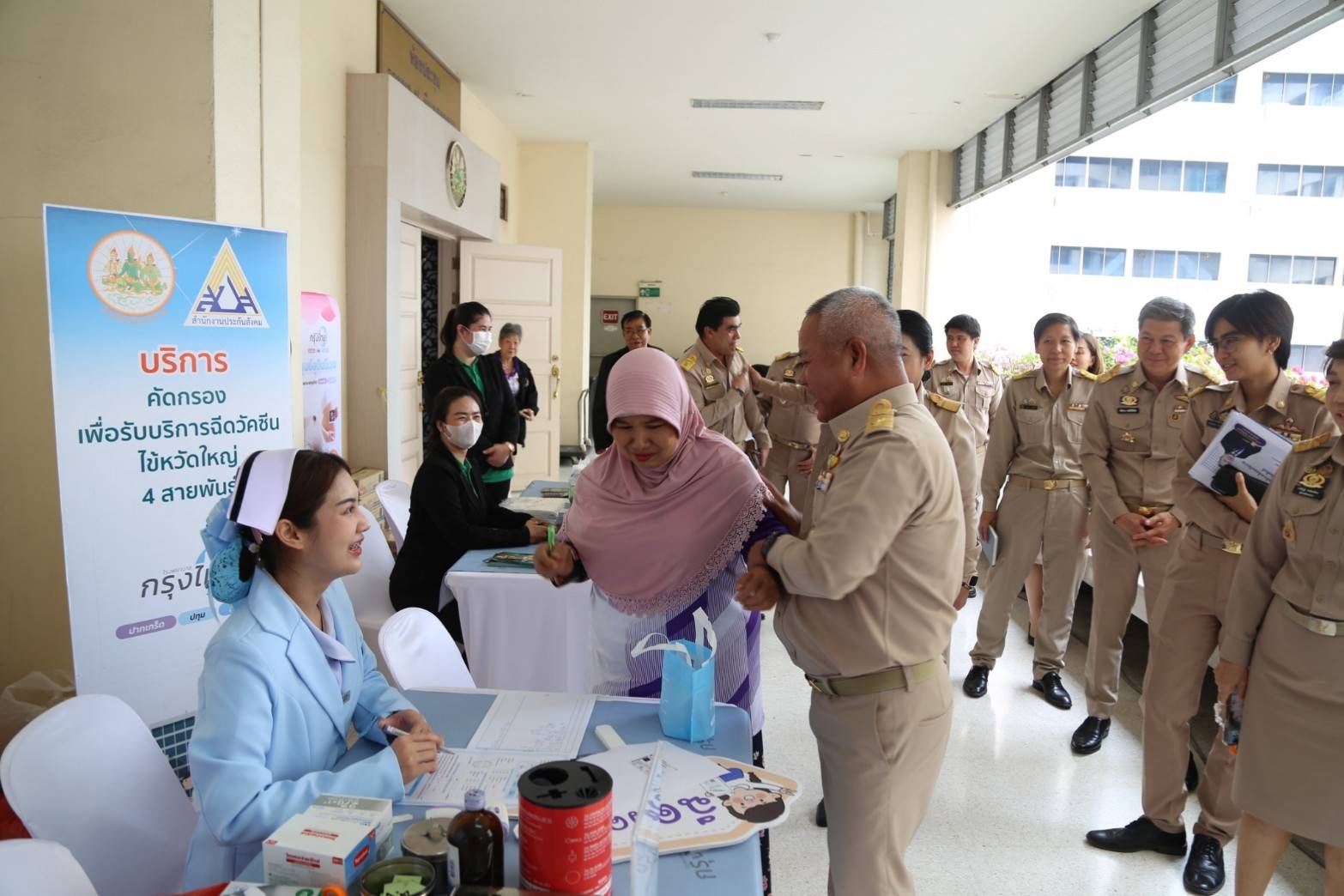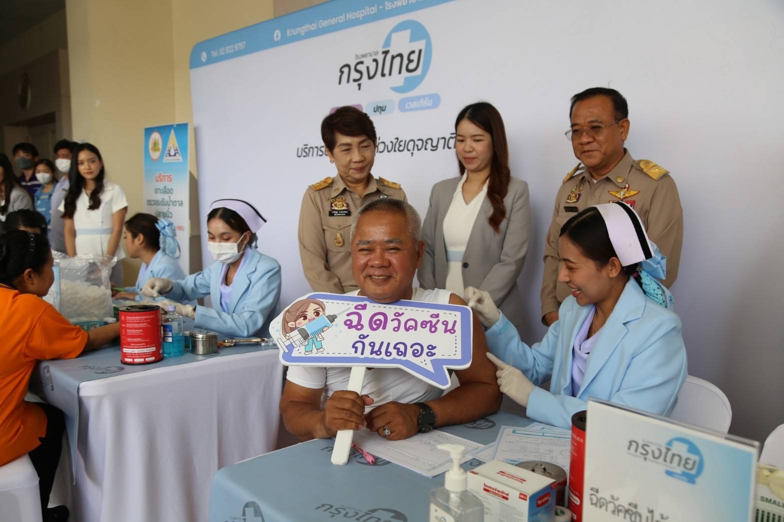หลังจากนั้น ปลัดกระทรวงแรงงาน ยังได้ร่วมฉีดวัคซีนไข้หวัดใหญ่ 4 สายพันธุ์ ซึ่งให้บริการโดยโรงพยาบาลกรุงไทย เพื่อเป็นต้นแบบในการรณรงค์ ให้ประชาชนตระหนักถึงความสำคัญในการเตรียมความพร้อม ป้องกันโรคไข้หวัดใหญ่ด้วย