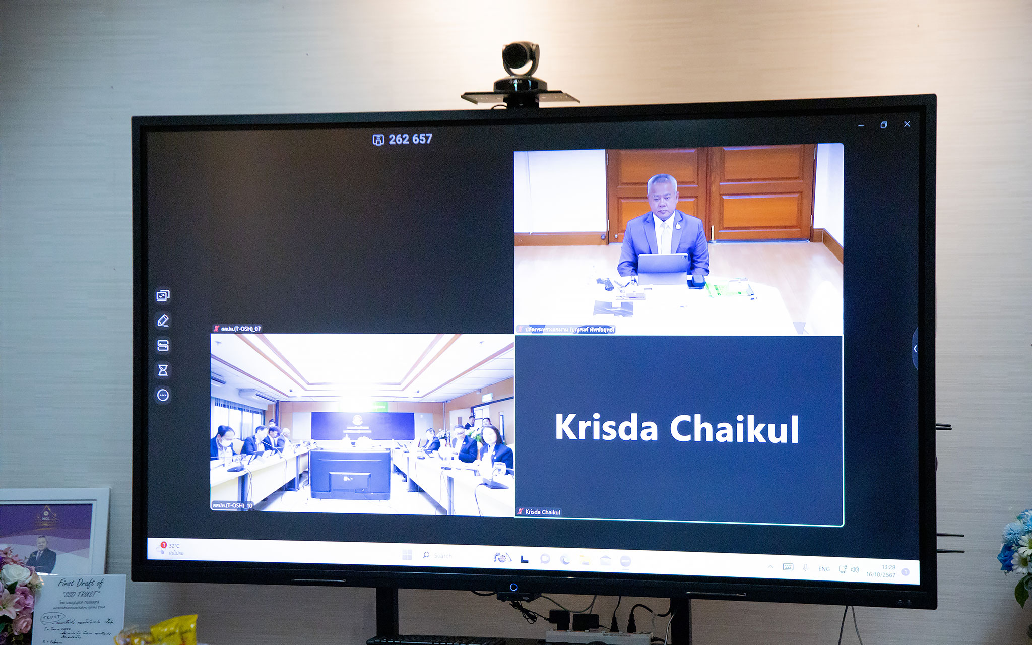 วันที่ 16 ตุลาคม 2567 เวลา 13.30 น. นายบุญสงค์ ทัพชัยยุทธ์ ปลัดกระทรวงแรงงาน เข้าร่วมประชุมคณะกรรมการสถาบันส่งเสริมความปลอดภัย อาชีวอนามัย และสภาพแวดล้อมในการทำงานครั้งที่ 12/2567 โดยมี นายกำธร ชีพชัยอิสสระ ประธานกรรมการสถาบันส่งเสริมความปลอดภัย อาชีวอนามัย และสภาพแวดล้อมในการทำงาน เป็นประธานการประชุม ผ่านระบบอิเล็คทรอนิกส์ ณ ห้องประชุมปลัดกระทรวงแรงงาน ชั้น 7 อาคารกระทรวงแรงงาน