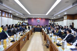 วันที่ 13 พฤษภาคม 2567 เวลา 10.00 น. นายไพโรจน์ โชติกเสถียร ปลัดกระทรวงแรงงาน ร่วมการประชุมหารือผลกระทบจากการปรับขึ้นอัตราค่าจ้างขั้นต่ำ ร่วมกับสภาอุตสาหกรรมแห่งประเทศไทยและสภาหอการค้าแห่งประเทศไทย โดยมี นายพิพัฒน์ รัชกิจประการ รัฐมนตรีว่าการกระทรวงแรงงาน เป็นประธานการประชุม นายเดชา พฤกษ์พัฒนรักษ์ รองปลัดกระทรวงแรงงาน นายนันทชัย ปัญญาสุรฤทธิ์ ผู้ตรวจราชการกระทรวงแรงงาน นายสมาสภ์ ปัทมะสุคนธ์ ผู้ตรวจราชการกระทรวงแรงงาน พร้อมด้วยผู้บริหารระดับสูงกระทรวงแรงงาน และหน่วยงานที่เกี่ยวข้อง เข้าร่วมหารือ ณ ห้องประชุมประสงค์ รณะนันทน์ ชั้น 5 อาคารกระทรวงแรงงาน