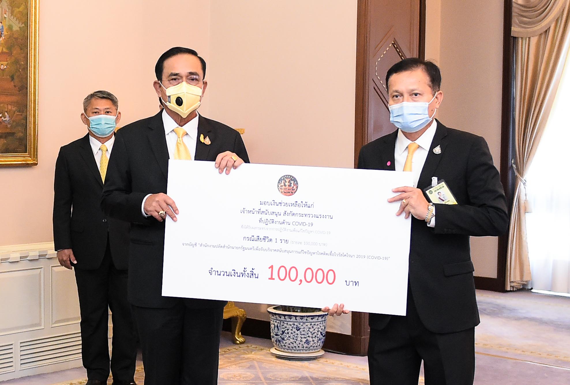 วันที่ 4 ธันวาคม 2563 เวลา 13.30 น. พลเอก ประยุทธ จันทร์โอชา นายกรัฐมนตรีและรัฐมนตรีว่าการกระทรวงกลาโหม ประธานในพิธีมอบเงินช่วยเหลือแก่เจ้าหน้าที่ที่ได้รับผลกระทบจากการปฏิบัติหน้าที่ด้านการป้องกันและแก้ไขปัญหาการแพร่ระบาดของโรคติดเชื้อไวรัสโคโรนา 2019 บัญชี “สำนักงานปลัดสำนักนายกรัฐมนตรีเพื่อรับบริจาคสนับสนุนการแก้ไขปัญหาโรคติดเชื้อไวรัสโคโรนา 2019 (COVID – 19)” โดยมี นายสุทธิ สุโกศล ปลัดกระทรวงแรงงาน รับมอบเงินทุนเลี้ยงชีพสำหรับครอบครัวนายหมัด มะมิน ล่ามประจำสำนักงานแรงงานในประเทศซาอุดีอาระเบีย (กรุงริยาด) ที่เสียชีวิตจากการปฏิบัติหน้าที่ให้ความช่วยเหลือแรงงานไทยในประเทศซาอุดีอาระเบียในช่วงสถานการณ์การแพร่ระบาดของโรค COVID – 19 จำนวน 100,000 บาท (หนึ่งแสนบาทถ้วน) ณ ห้องสีม่วง ตึกไทยคู่ฟ้า ทำเนียบรัฐบาล